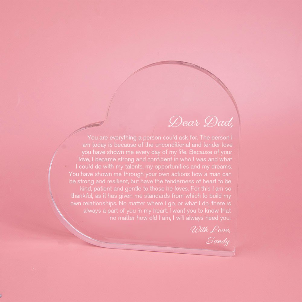 The acrylic ornaments are designed with a heart shape and you can customize the heartfelt want to say to your dad in this plaque, which is very meaningful and full of love. Perfect gifts for dads daughters, sons, or kids.