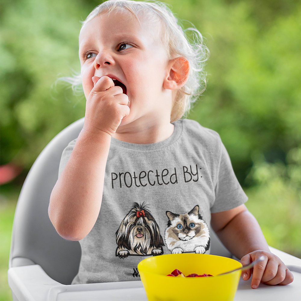 This t-shirt showcases adorable dog and cat breeds in its pattern, adding a touch of cuteness and uniqueness. Comes in multiple sizes and colors, making it easy to find the perfect fit and match your preferences. It's a great gift option for families who have pets and want to share their love for animals with their little ones.