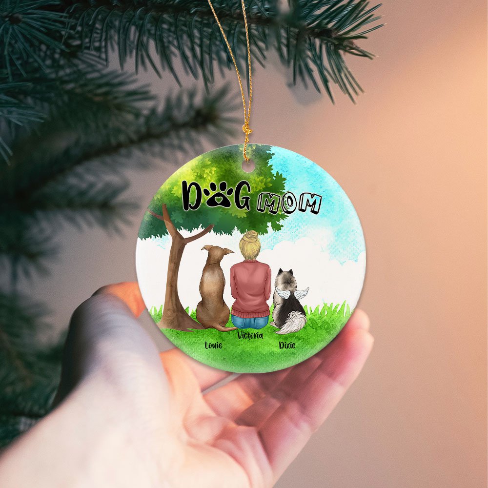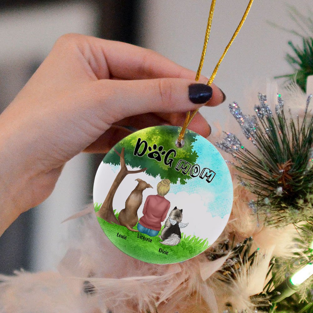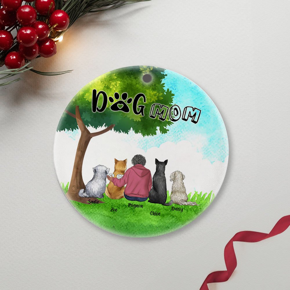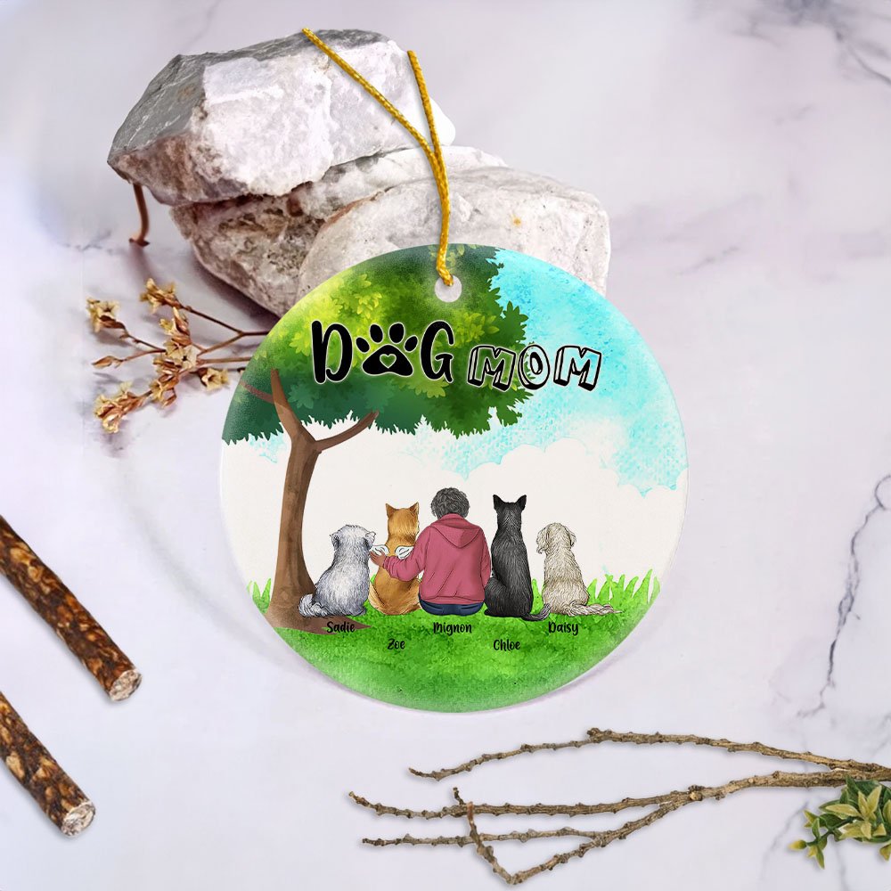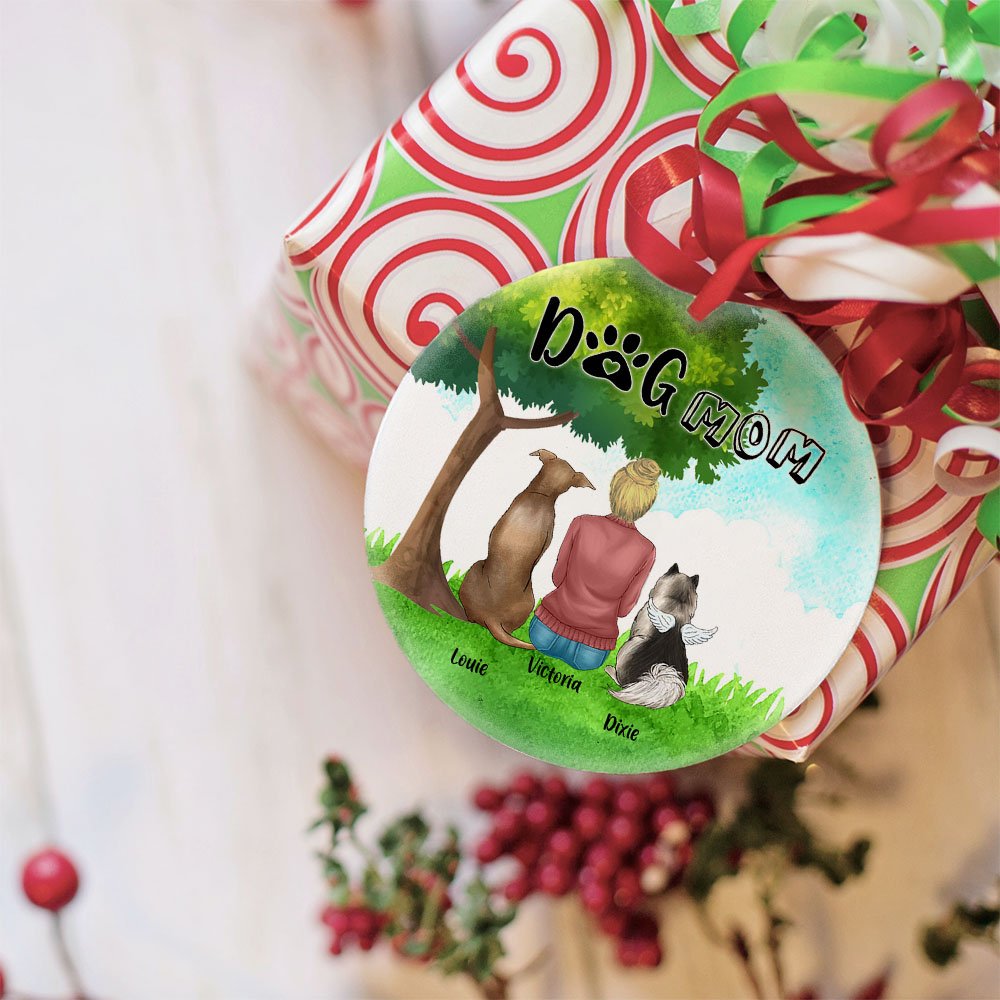 The backdrop of green grass adds a sense of harmony and nature to the decorations. "Dog Mom" or "Dog Dad" shows your love and missing for dogs. The hanging round shape feels gentle, making it stand out from other accessories and really showing your love for your dog.