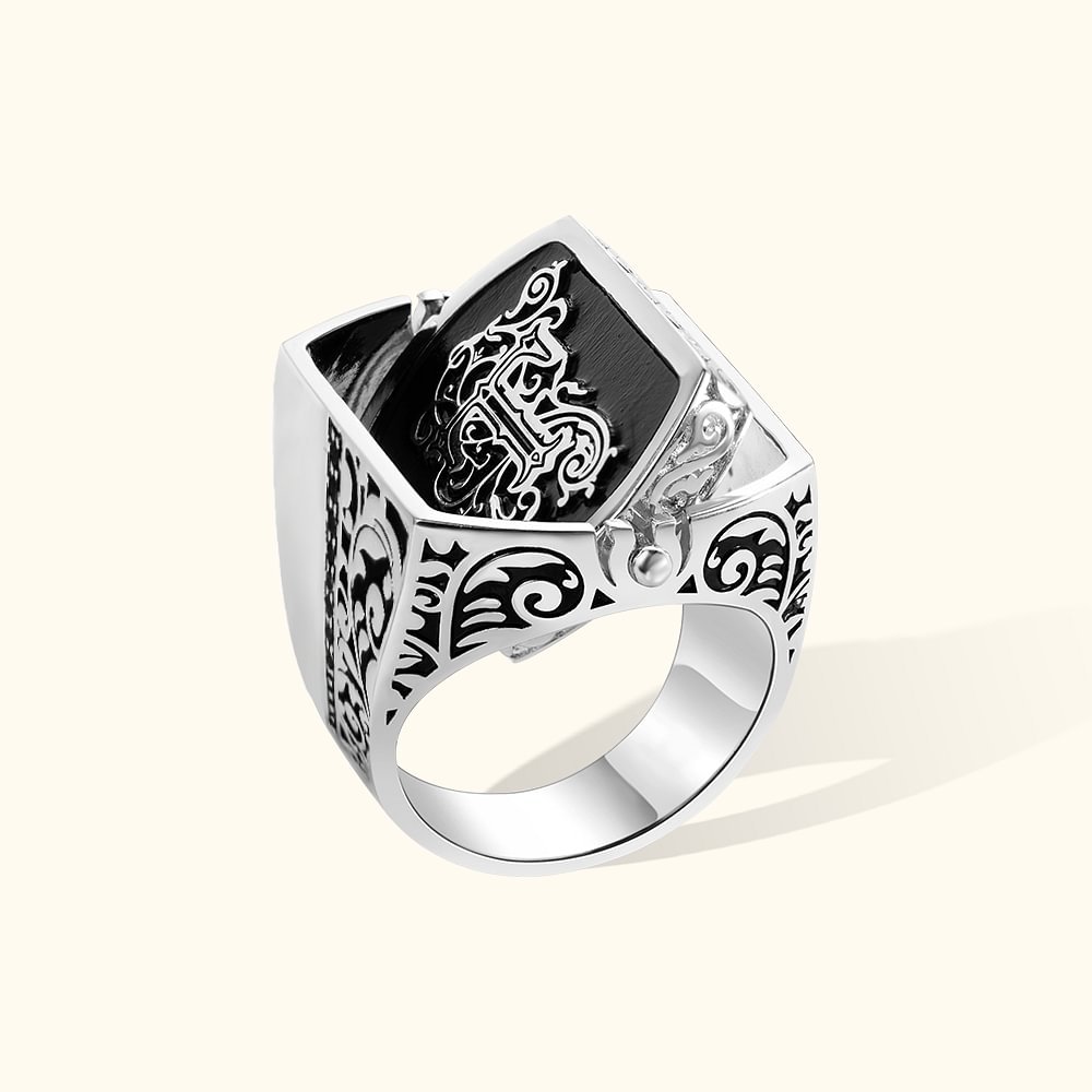Our flip letter carved design ring is made of high-quality materials, ensuring durability and long-lasting attractiveness. The sleek and manly form of this signet ring will instantly boost any ensemble. This ring will stand out whether worn as a statement piece or as an everyday accessory.