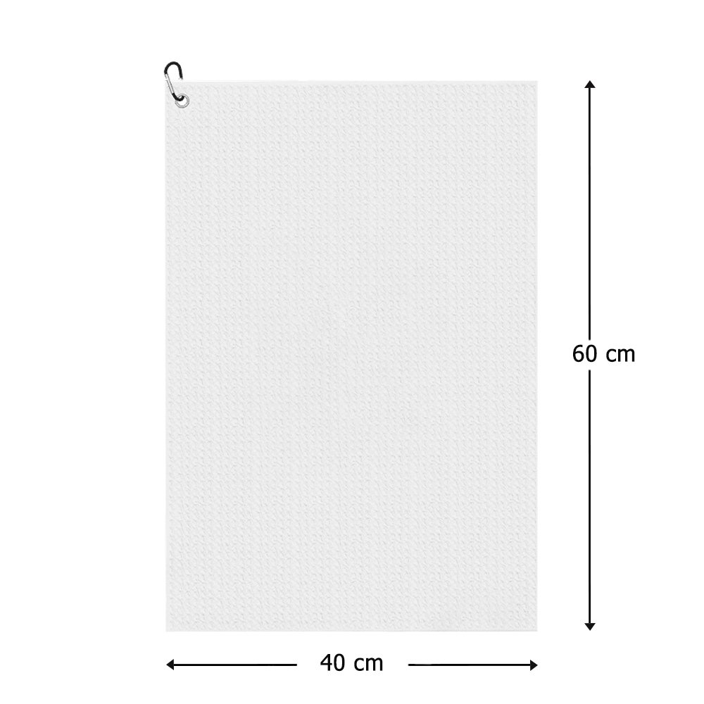 Siinä on kestävä ja ruostumaton karabiinikiinnike, joka kiinnittyy helposti golfbägeihin, kärryihin tai vyöhön. Kevyt ja sopivan kokoinen (noin 40 × 60 cm) pyyhe on käytännöllinen kumppani kentälle, harjoitusalueelle ja pelin jälkeiseen puhdistukseen.