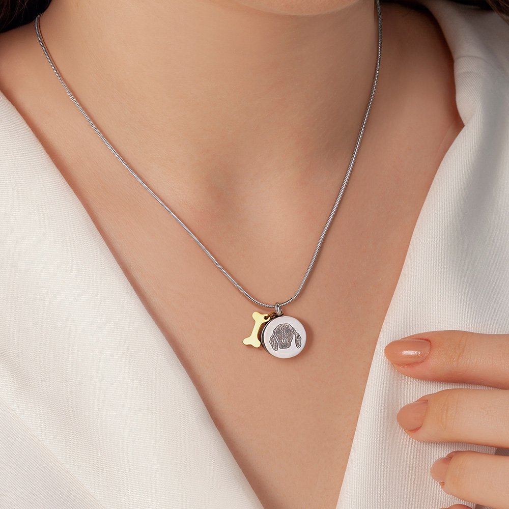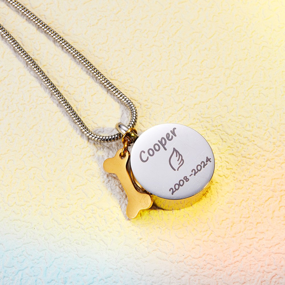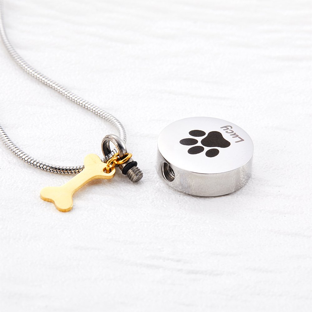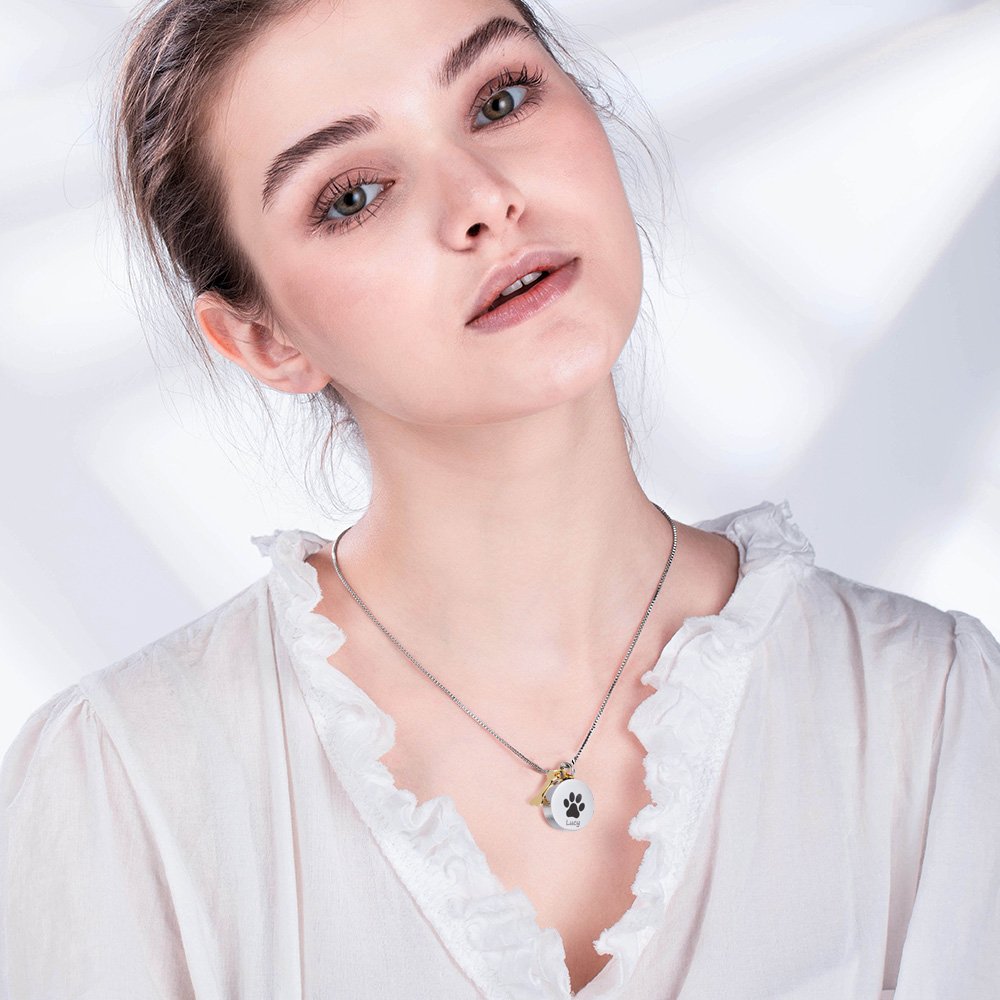 Tämä on henkilökohtainen uurnakaulakoru, jonka etupuolella on rakkaan lemmikkisi yksilöllinen muotokuva tai tassunjälki. Takapuolelle voit kaivertaa myös merkityksellisen viestin, joten se on todella ainutlaatuinen ja ainutkertainen kunnianosoitus rakkaalle kumppanillesi.