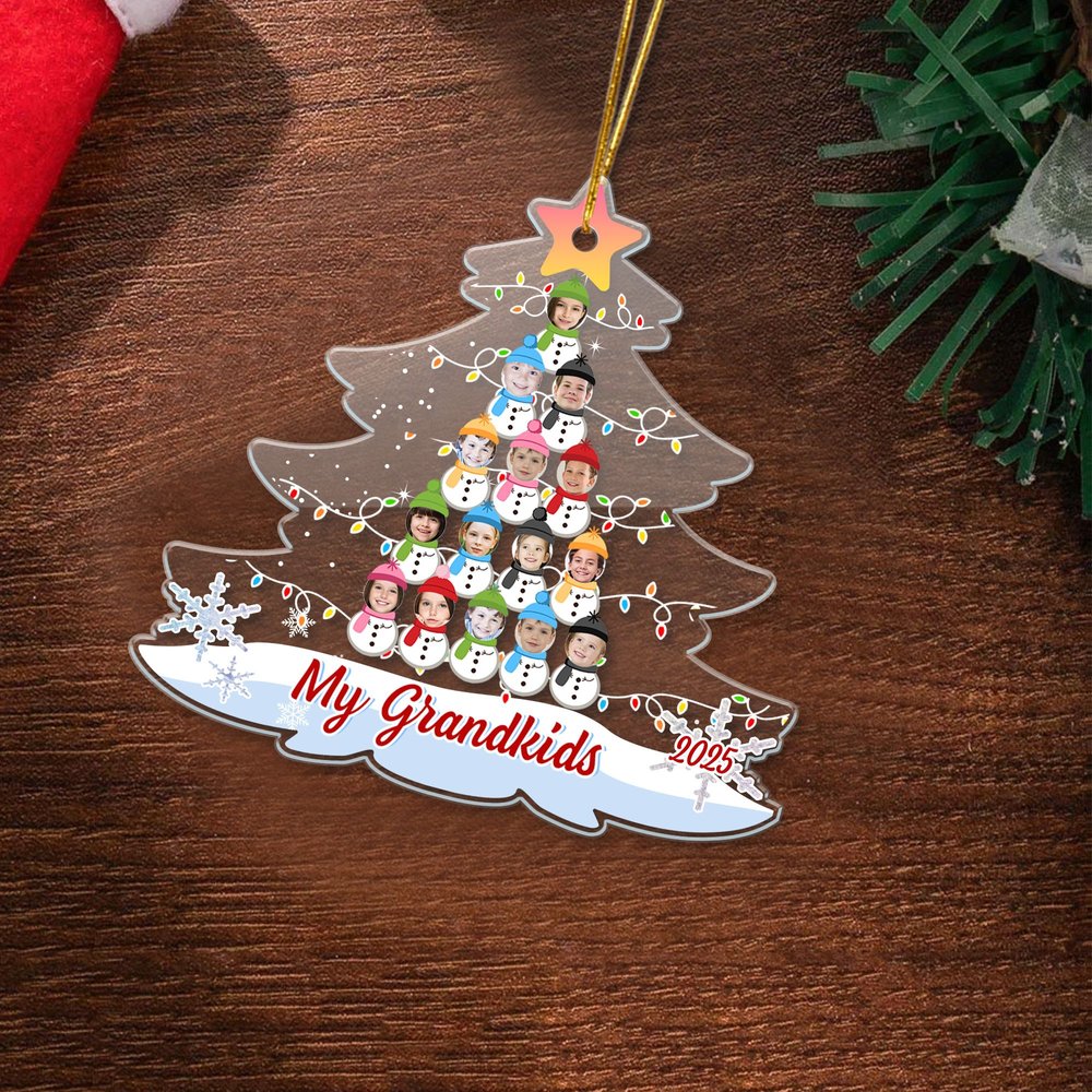 Tässä koristeessa on ihastuttava kuva lumiukosta sekä muokattavissa oleva otsikko, ja se tuo persoonallisen lisän loma-ajan sisustukseesi. Voit muokata sitä 1-15 lumiukolla, joissa on henkilökohtaiset muotokuvat, ja sen viehättävä kuva kuvastaa talven taikaa ja juhlakauden iloa, mikä tekee siitä erottuvan kappaleen, joka tuo lämpöä ja iloa juhliisi.