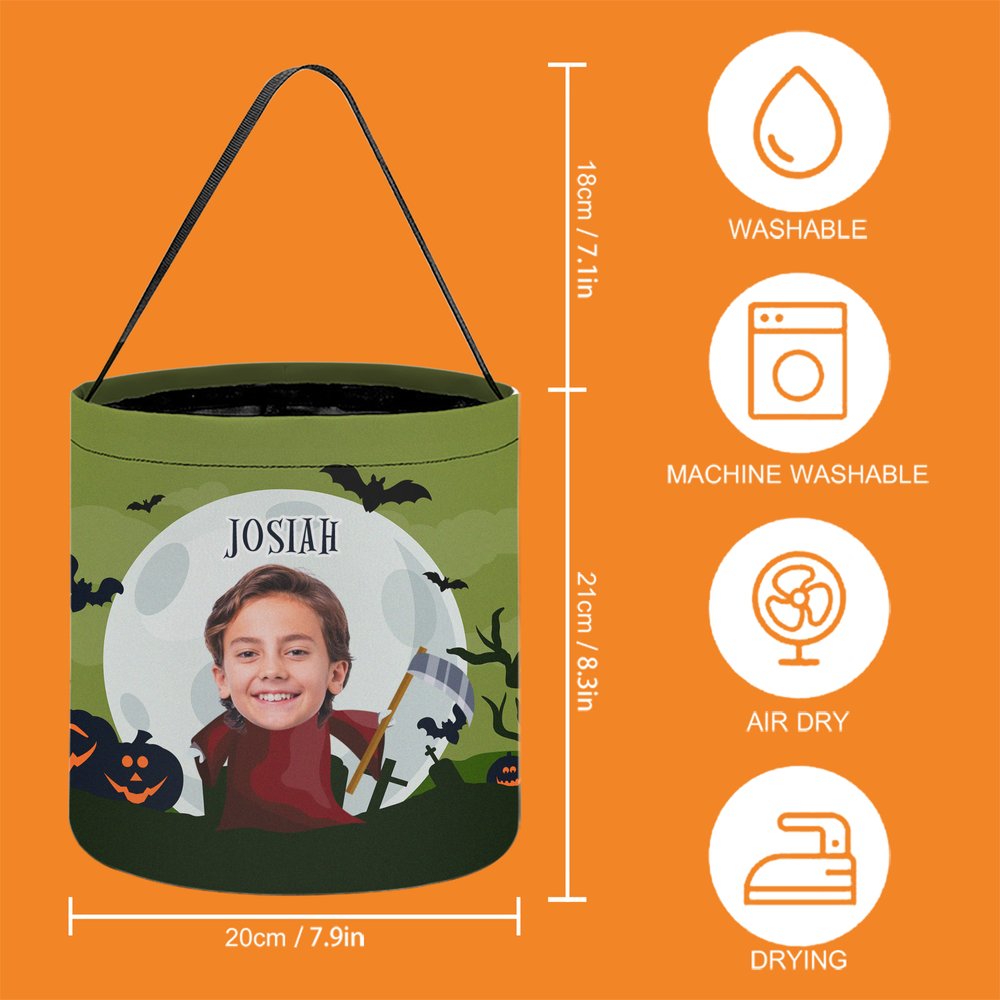 Valmistettu polyesteristä - tukeva ja kestävä, joka käsittelee päivittäistä käyttöä ja kuljettaa karkkia. Lämpösiirtotulostus pitää kuviot eloisina, mukautetut valokuvat ja Halloween-elementit kirkkaina ja haalistumattomina. Jopa useiden pesujen jälkeen pysyy kuin uusi.
