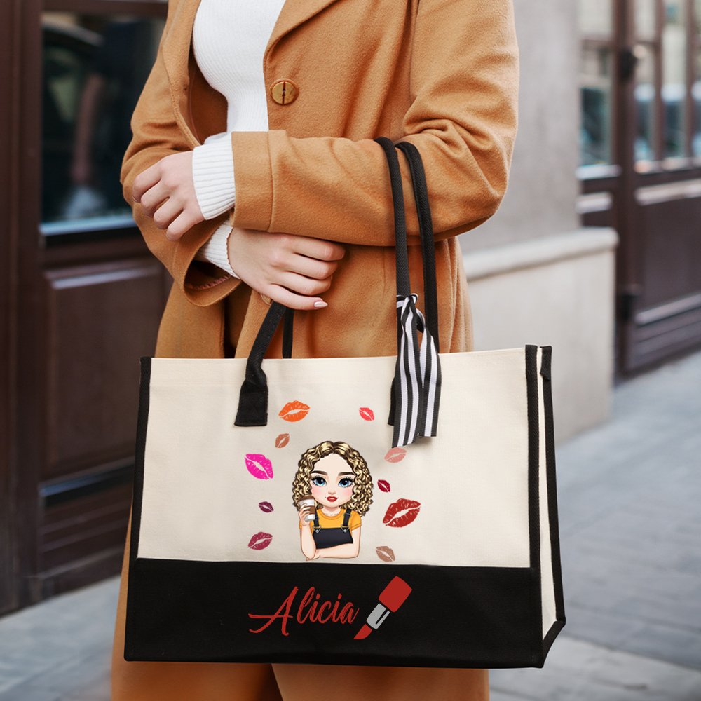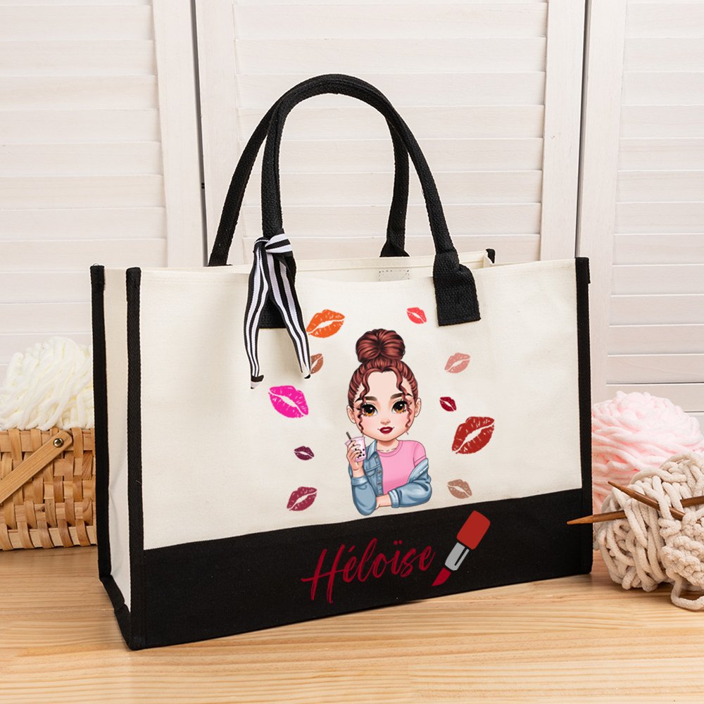 Henkilökohtainen muoti sarjakuva tyttö huulipuna suunnittelu suuri kangas Kangas Kangaskassi nimi loma syntymäpäivä lahja naisille tytöille