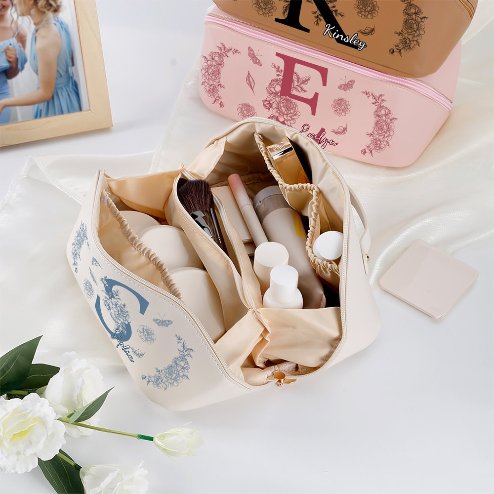 Meikkilaukkumme on ihanteellinen valinta äideille, siskoille, morsiusneidoille tai ystäville. Olipa kyseessä syntymäpäivä, vuosipäivä tai erityistilaisuus, se kantaa sydämelliset toiveesi. Kukkainen nimikirjain ja henkilökohtainen nimikuvio lämmittävät vastaanottajan sydäntä ja tekevät arkisista hetkistä arvokkaita muistoja.
