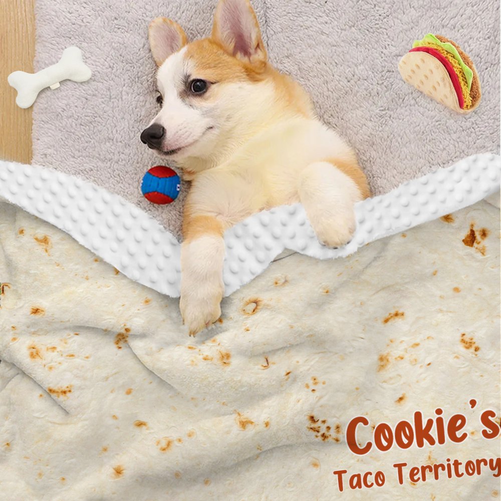 Kokonaisuutena huopa muistuttaa ulkonäöltään tortillaa, ja siinä on yksityiskohtia, kuten luonnolliset paahtojäljet ja pehmeät värit. Lemmikin nimi ja teksti on painettu kulmaan, ja ne on kirjoitettu eloisalla fontilla, joka vastaa tortillan "gourmet-tyyppistä" muotoilua. Kun lemmikki makaa sen päällä, se näyttää olevan "käärittynä" herkulliseen tortillaan, ja kohtaus on jännittävä ja söpö.