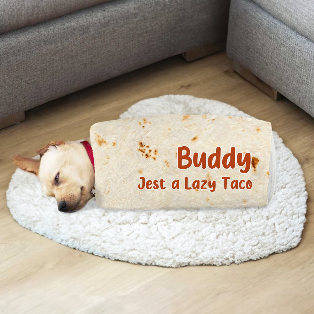 Olipa kyse syntymäpäivistä, joulusta tai muista juhlapyhistä, tämä humoristinen tortilla-aiheinen lemmikkihuopa, jossa on yksilöllinen nimen räätälöinti, on ihanteellinen lahja lemmikkieläinten ystäville, lemmikkieläinten omistajille tai ystäville ja perheelle, joilla on lemmikkejä. Se välittää syvää kiintymystä lemmikkejä kohtaan ja saa hymyn huulille hauskalla muotoilullaan.