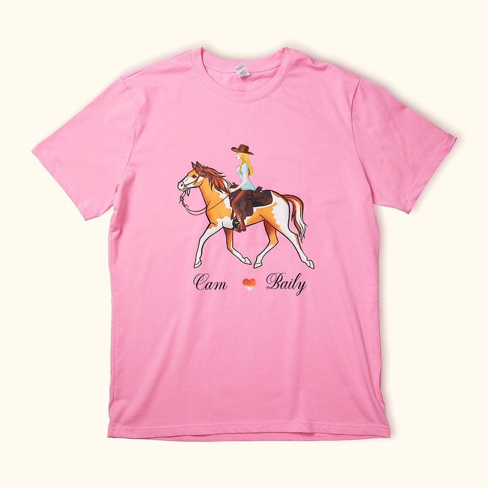 Viehättävän viehättävyytensä ansiosta nämä t-paidat ovat erinomaisia lahjoja erilaisiin tilaisuuksiin. Olipa kyseessä sitten syntymäpäivä, joulu tai yksinkertaisesti arvostuksen osoitus, tämä asu tuo varmasti iloa kenelle tahansa hevosharrastajalle. Nämä paidat sopivat yhtä lailla rentoihin retkiin, ratsastusseikkailuihin tai jopa ratsastuskilpailuihin, ja niissä yhdistyvät tyyli ja intohimo saumattomasti puettavaksi mestariteokseksi.