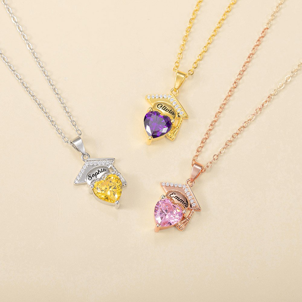 Tämän kaulakorun riipus on valmistumislakin tyylinen ja siinä on kuohuviini syntymäkivi, joka merkitsee valmistumisen "saavutusta". Lisää nimesi riipukseen, jotta kaulakorusta tulee ainutlaatuinen. Voit valita kolmesta eri kaulakorun väristä. Kaulakorut sopivat eriväristen hameiden, mekkojen, paitojen ja takkien kanssa. Varmista, että erotut joukosta, kiinnität kaikkien huomion ja teet itsestäsi houkuttelevamman joka päivä.