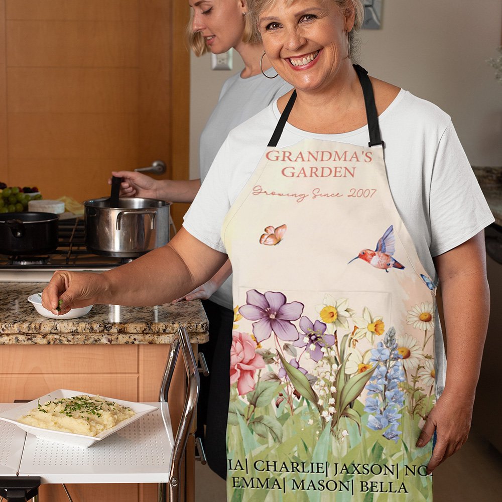 Syntymäpäiviksi, äitienpäiväksi, vuosipäiviksi - anna tämä mukautettu esiliina, käytännöllinen ja sydämellinen. Eksklusiiviset syntymäkukat ja nimisuunnittelu - "kutoa" koko perheen rakkaus ja siunaukset esiliinaan. Joka kerta, kun vastaanottajat käyttävät sitä ruoanlaittoon tai puutarhanhoitoon, he muistavat tämän lämmön.