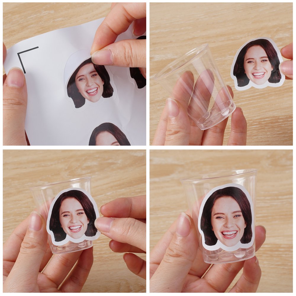 Mukautettavat valokuvatarrat voivat toistaa tarkasti sulhasen hauskat ilmeet tai ikoniset hymyt. Tarrat voidaan liimata muovikuppeihin liioitelluilla avatareilla. Lasin nostaminen sytyttää juhlijoiden naurun välittömästi, jolloin yhden illan karnevaalit ovat täynnä dramaattisia muistoja.