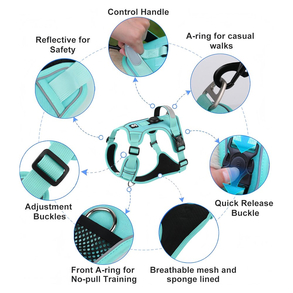 Täydellinen päivittäisille kävelylenkeille, yöllisiin seikkailuihin, koko kehon heijastinnauhojen ansiosta, ja matkoille. Vetovastaisen rakenteen ja AirTag-yhteensopivuuden ansiosta se on luotettava valinta, kun haluat pitää lemmikkisi turvassa ja jäljitettävissä kaikissa tilanteissa.