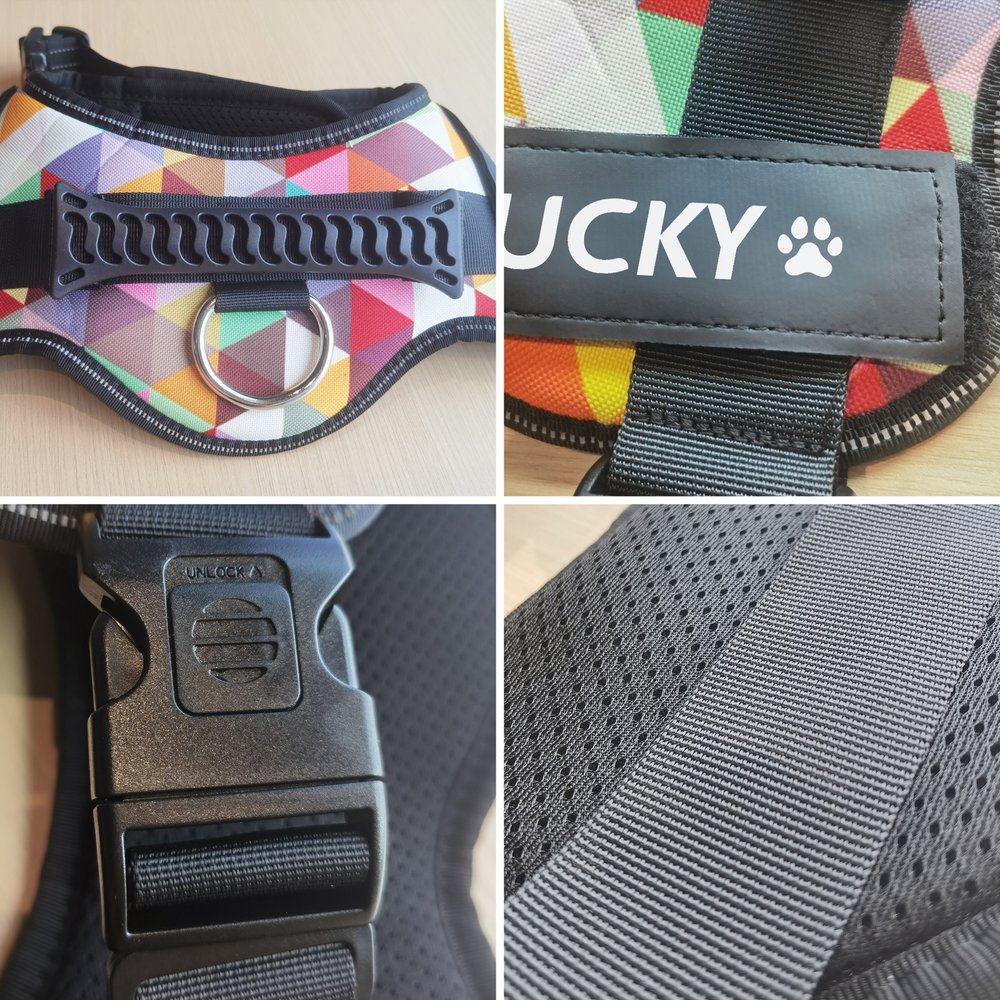 | Ominaisuus: | Mukava, tassunpainatus, helppo käyttää, säädettävät hihnat. |