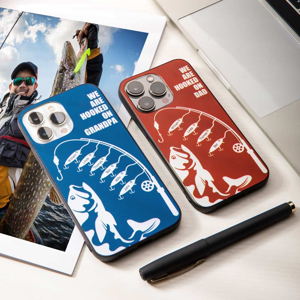 Yllätä isäsi syntymäpäivinä, vuosipäivinä, jouluna, isänpäivänä ja muina erityisinä aikoina vuodessa. Tämä henkilökohtainen perheenjäsenen nimellä varustettu puhelinkotelo olisi täydellinen lahjaidea isälle tai isoisälle, joka rakastaa kalastusta.