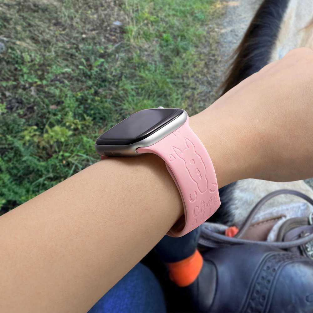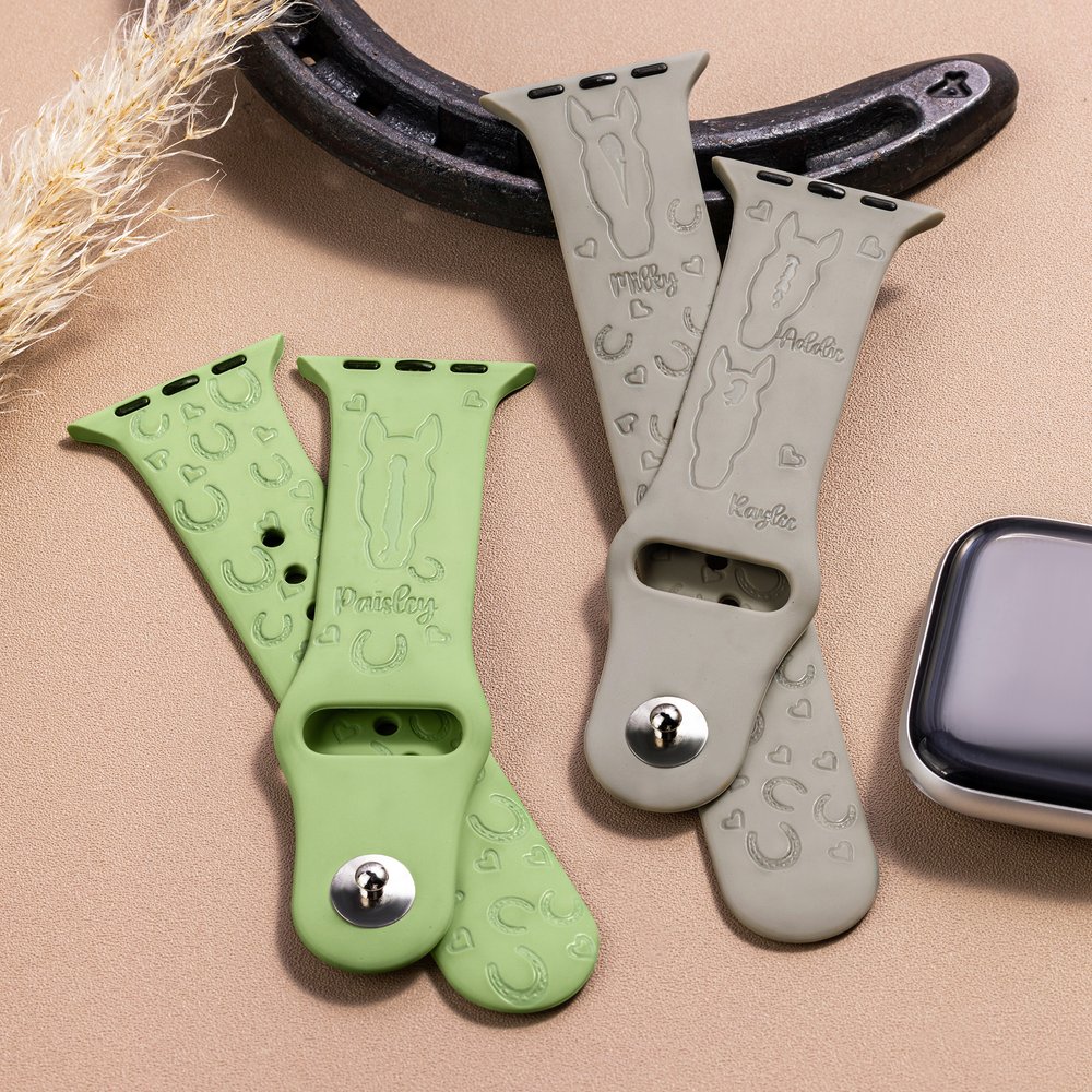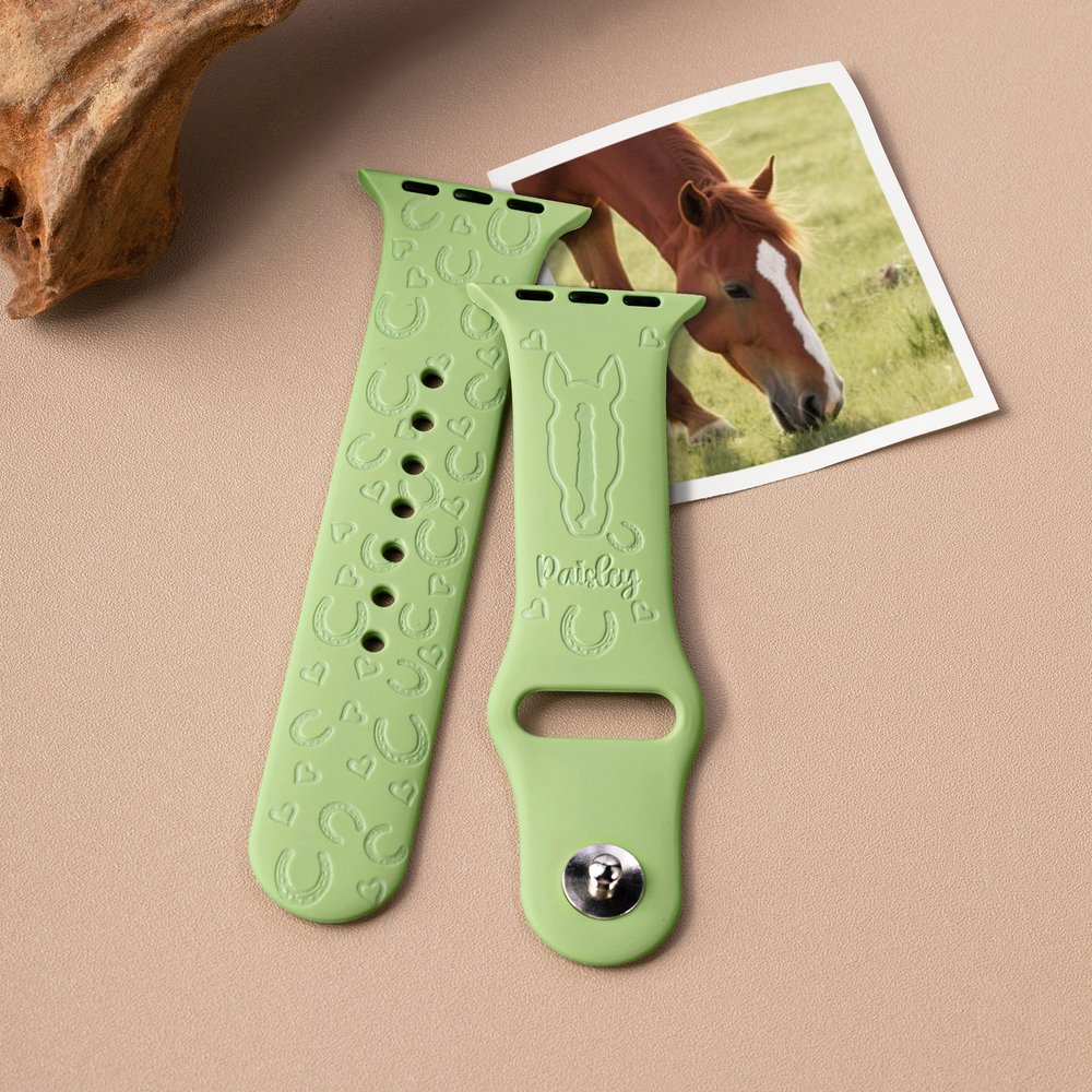 Tämä kellonauha on suunniteltu hevosten ystäville, ja se tuo intohimosi hevosia kohtaan ranteeseesi. Sen lisäksi, että voit ladata yhdestä kolmeen valokuvaa, voit myös valita useista eloisista ja dynaamisista väreistä, jotka sopivat täydellisesti urheilutyyliisi. Lisäksi hihnaan voidaan personoida hevosesi nimi, mikä tuo esiin persoonallisuutesi ja tyylisi.