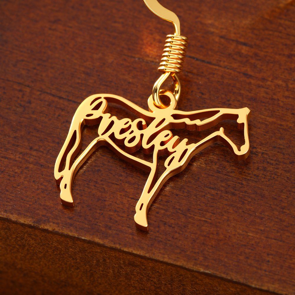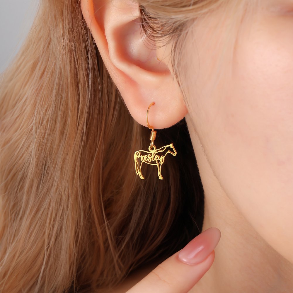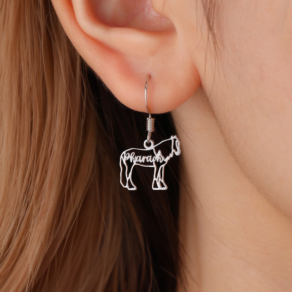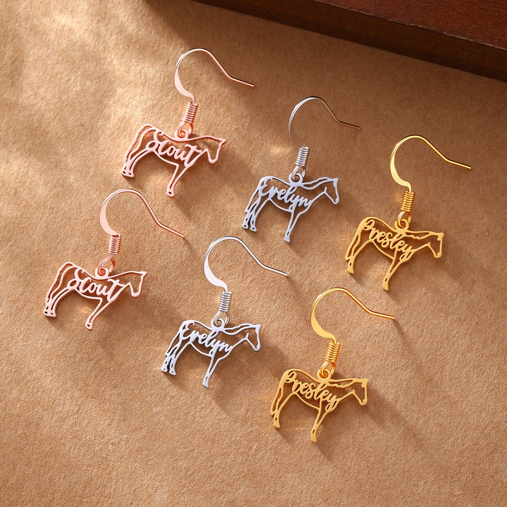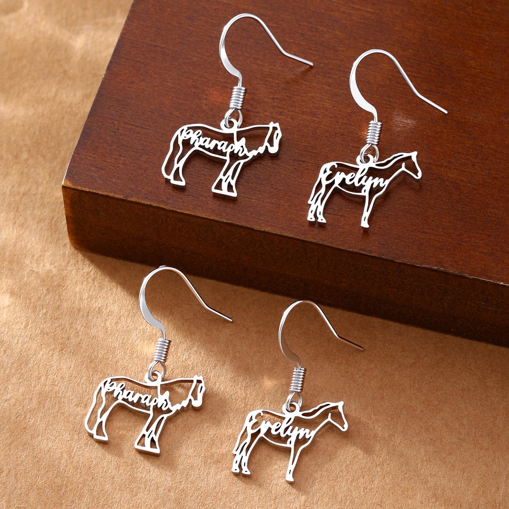 Nämä korvakorut vangitsevat hevosen energian ja kauneuden herkän kokonsa ja silmiinpistävän siluettinsa ansiosta. Räätälöity nimi sulautuu harmonisesti siluettiin, mikä lisää henkilökohtaisen kosketuksen, joka juhlistaa hevosurheilun intohimoa. Ne sopivat erinomaisesti ratsastustapahtumiin, kerhotilaisuuksiin tai jokapäiväiseen käyttöön, ja ne viestivät rohkeudesta ja itsenäisyydestä - ne auttavat sinua ilmaisemaan ainutlaatuista persoonallisuuttasi.