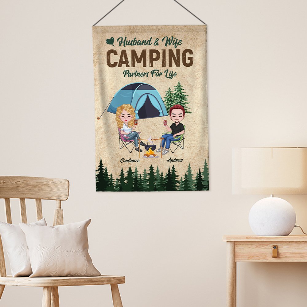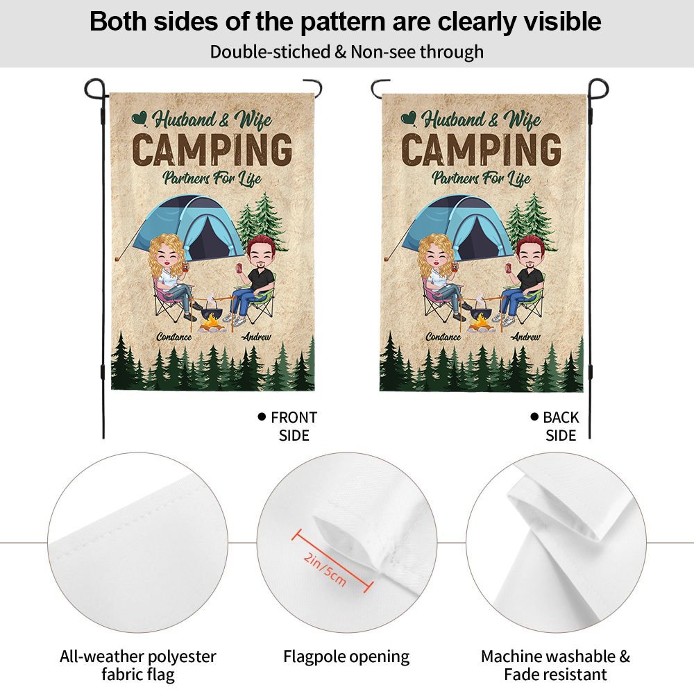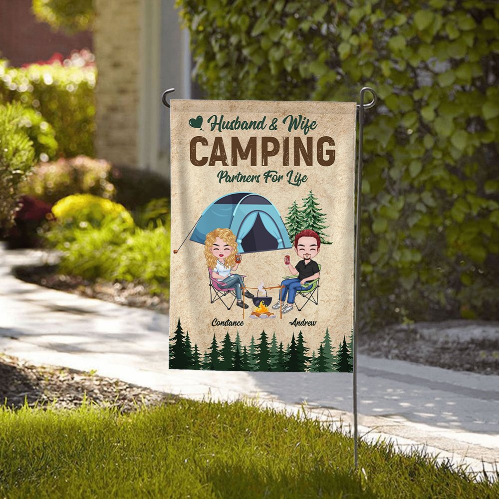Henkilökohtainen aviomies ja vaimo Camping Partners for Life Garden Flag lahja Camping pariskunnille