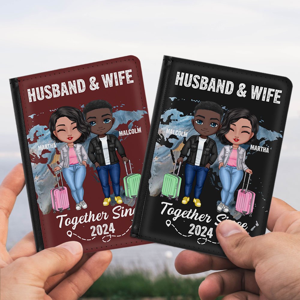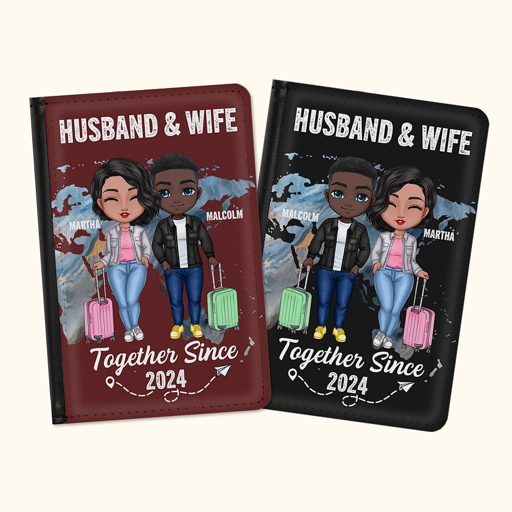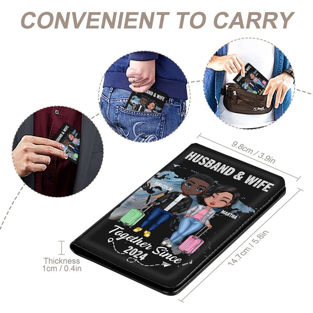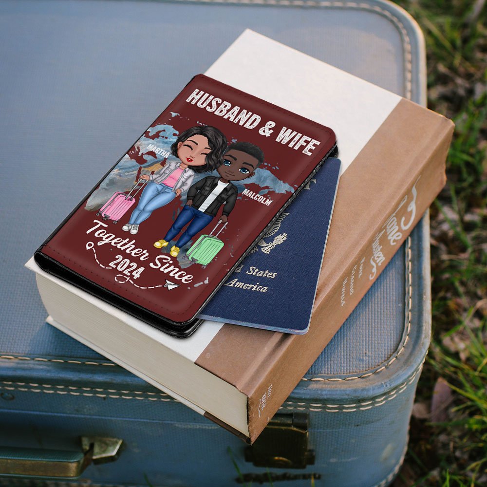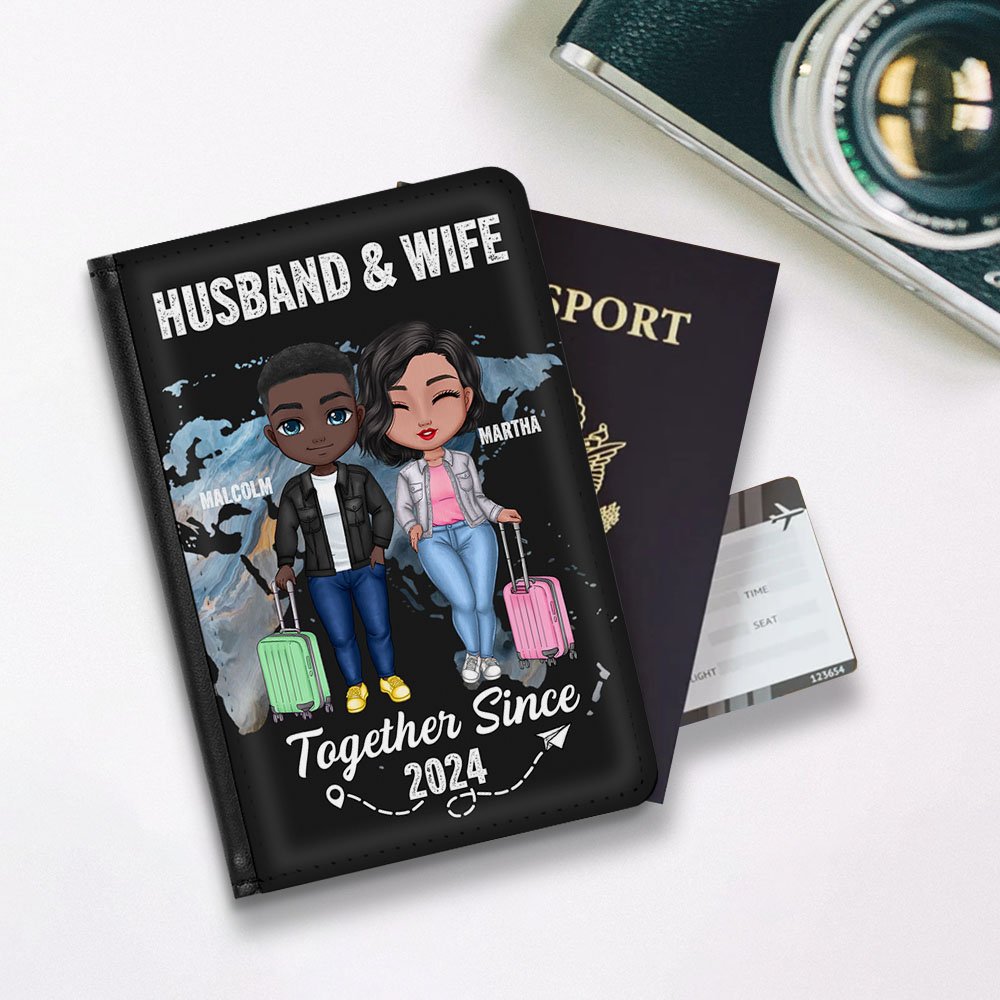 Our passport cover proudly displays the phrase "together since..." enduring commitment between individuals who share a mutual passion for travel. Elevate your travel accessory with a personalized touch – choose characters, background, and even add your name. This ensures a truly unique accessory that mirrors your personality and celebrates your distinct style.