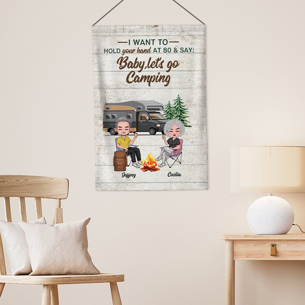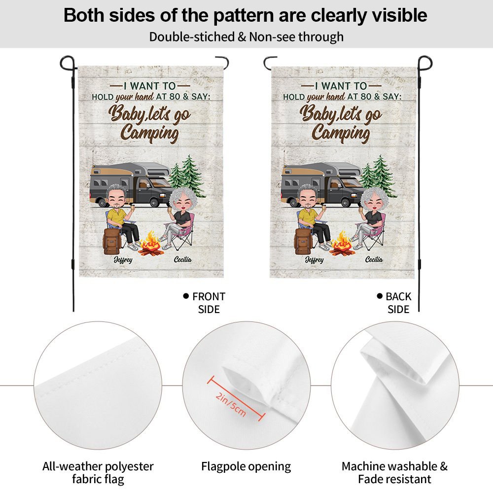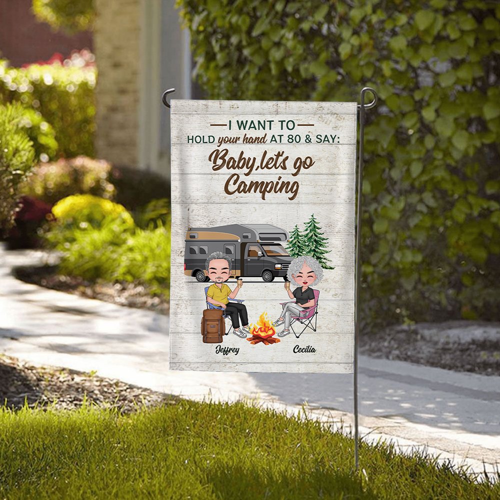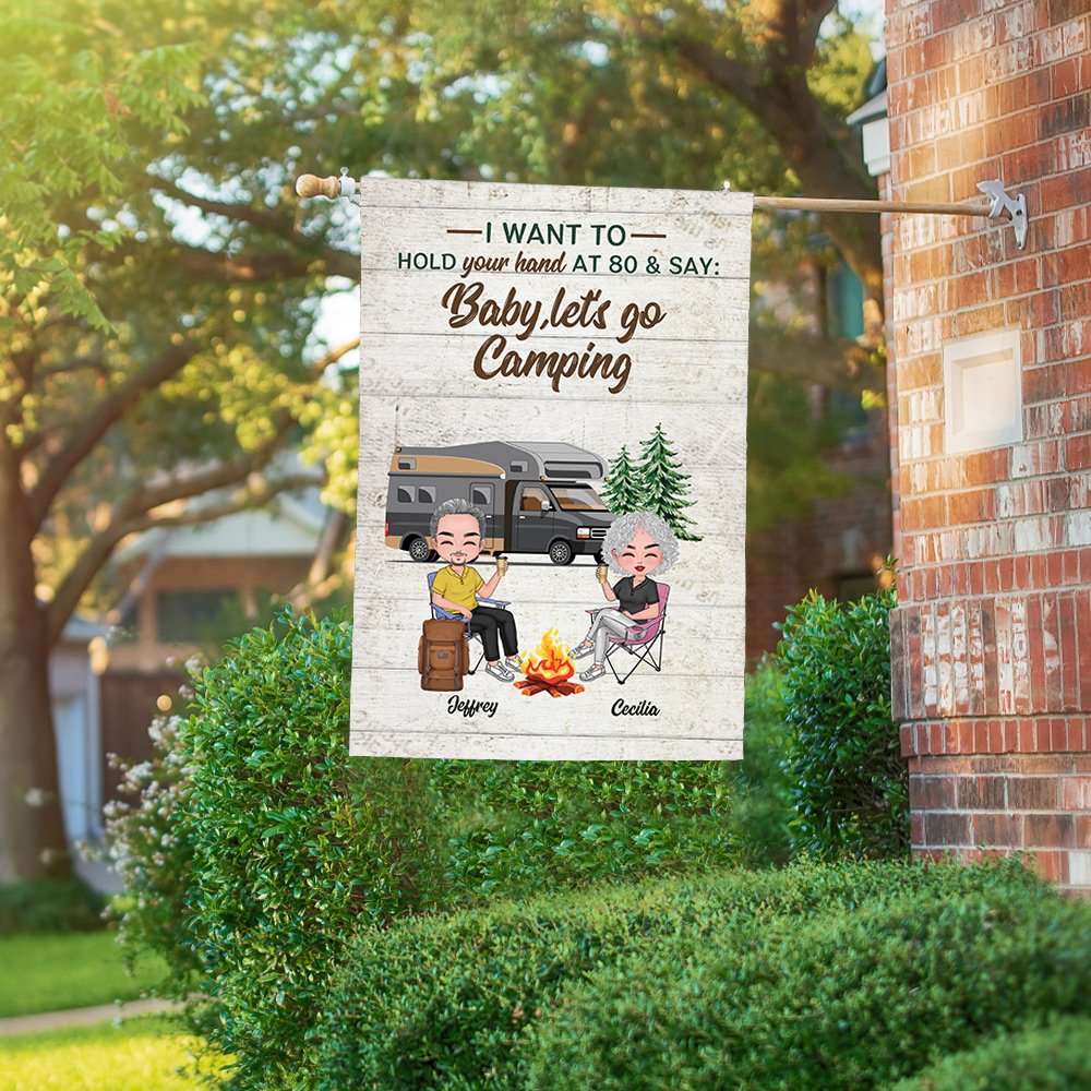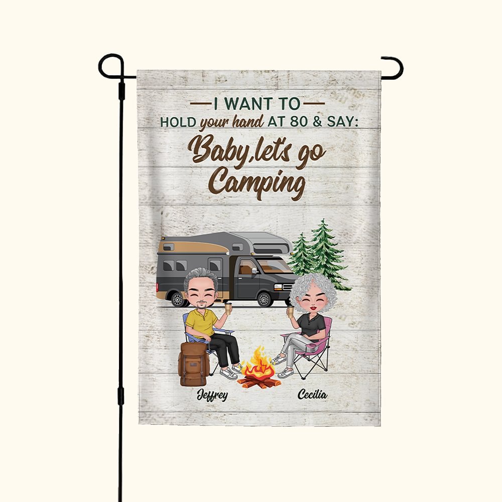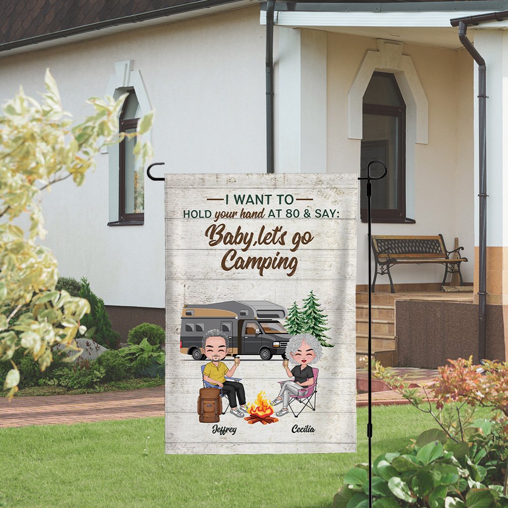 Henkilökohtainen Haluan pitää kädestäsi 80 ja sanoa Baby Mennään leirintäalueelle Garden Flag Ystävänpäivä lahja pariskunnalle