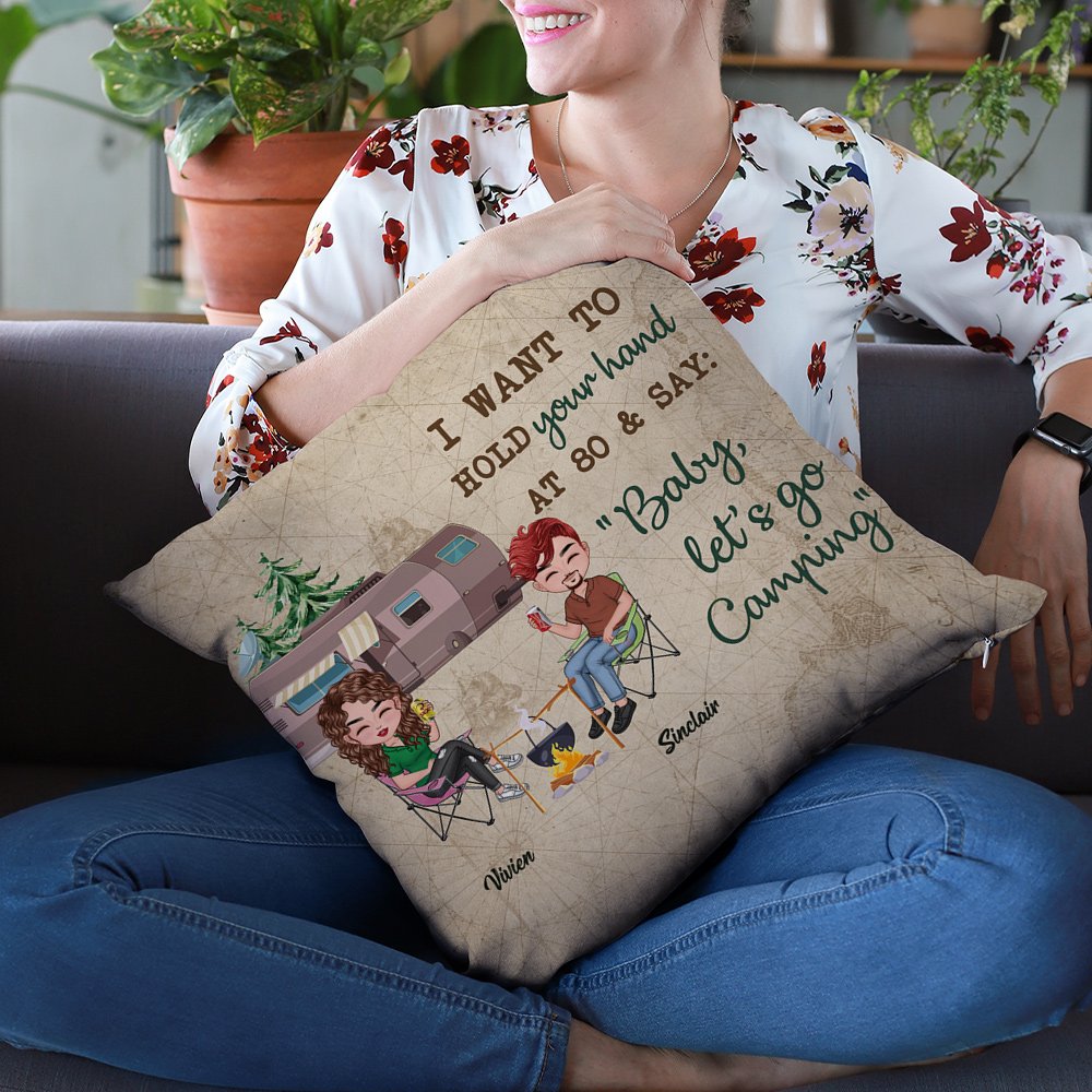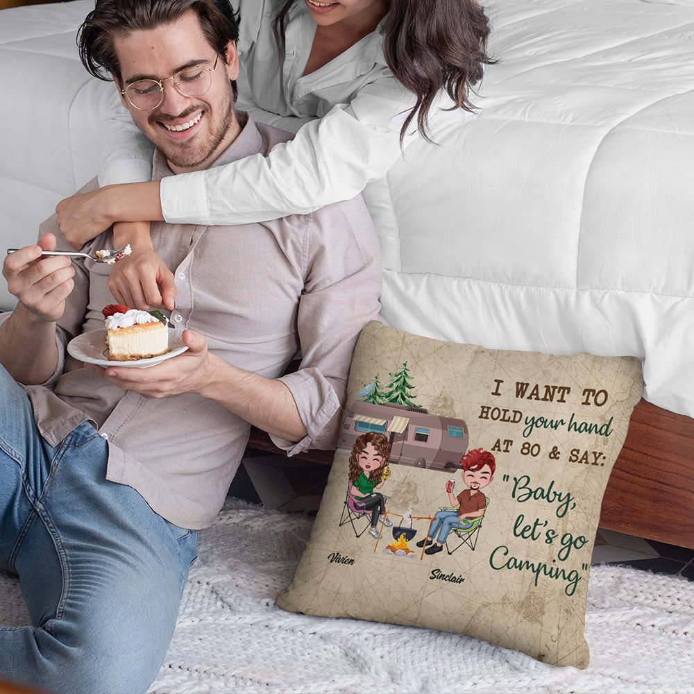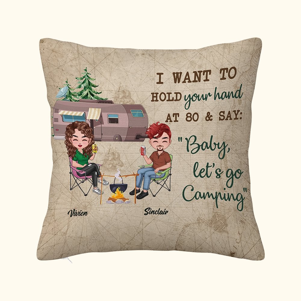 Henkilökohtainen Haluan pitää kädestäsi 80 ja sanoa Baby Mennään leirintäalueelle heittää tyynyn kansi vuosipäivä syntymäpäivälahja leirintäalueelle pari sohva sisustus