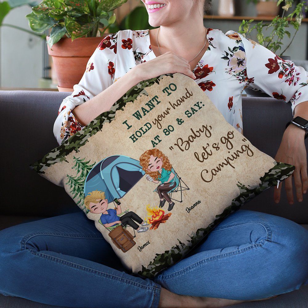 Henkilökohtainen Haluan pitää kättäsi 80 Camping pari Travel Life heittää tyynyn kansi syntymäpäivä vuosipäivä lahja pari Home Decoration