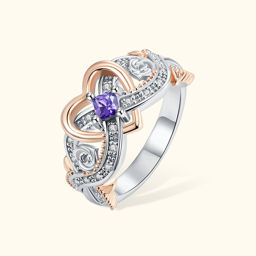This ring features the classic design of the infinity symbol and rose gold heart, with a customizable birthstone in the center, and tiny clear cubic zirconia crystal stones to add to its beauty and elegance, making the rings stunning to catch the eyes.