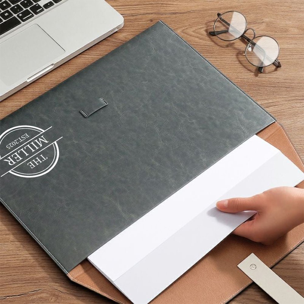 Laadukkaasta, erittäin ohuesta PU-nahasta valmistettu kansio on vedenpitävä ja kestää päivittäistä kulutusta. Se suojaa tärkeitä asiakirjoja roiskeilta ja kosteudelta säilyttäen samalla sileän, pehmeän tuntuisen pinnan.