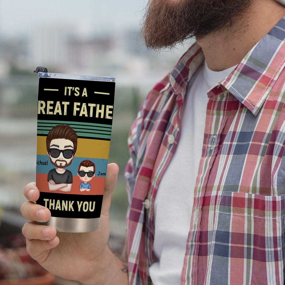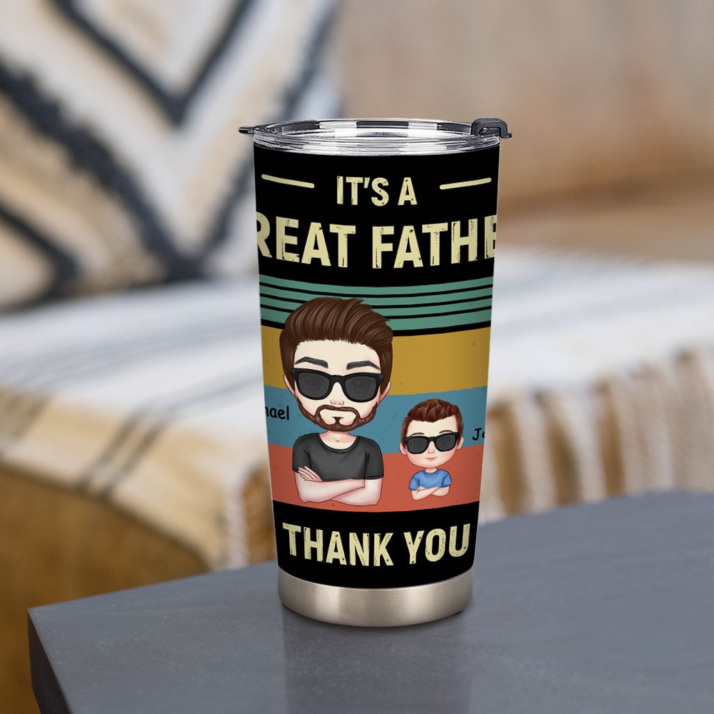 This is a tumbler with the theme of father and kids, it aims to send a good wish on Father's Day to dad or grandpa, you can customize the image of father and child to form a unique tumbler gift.