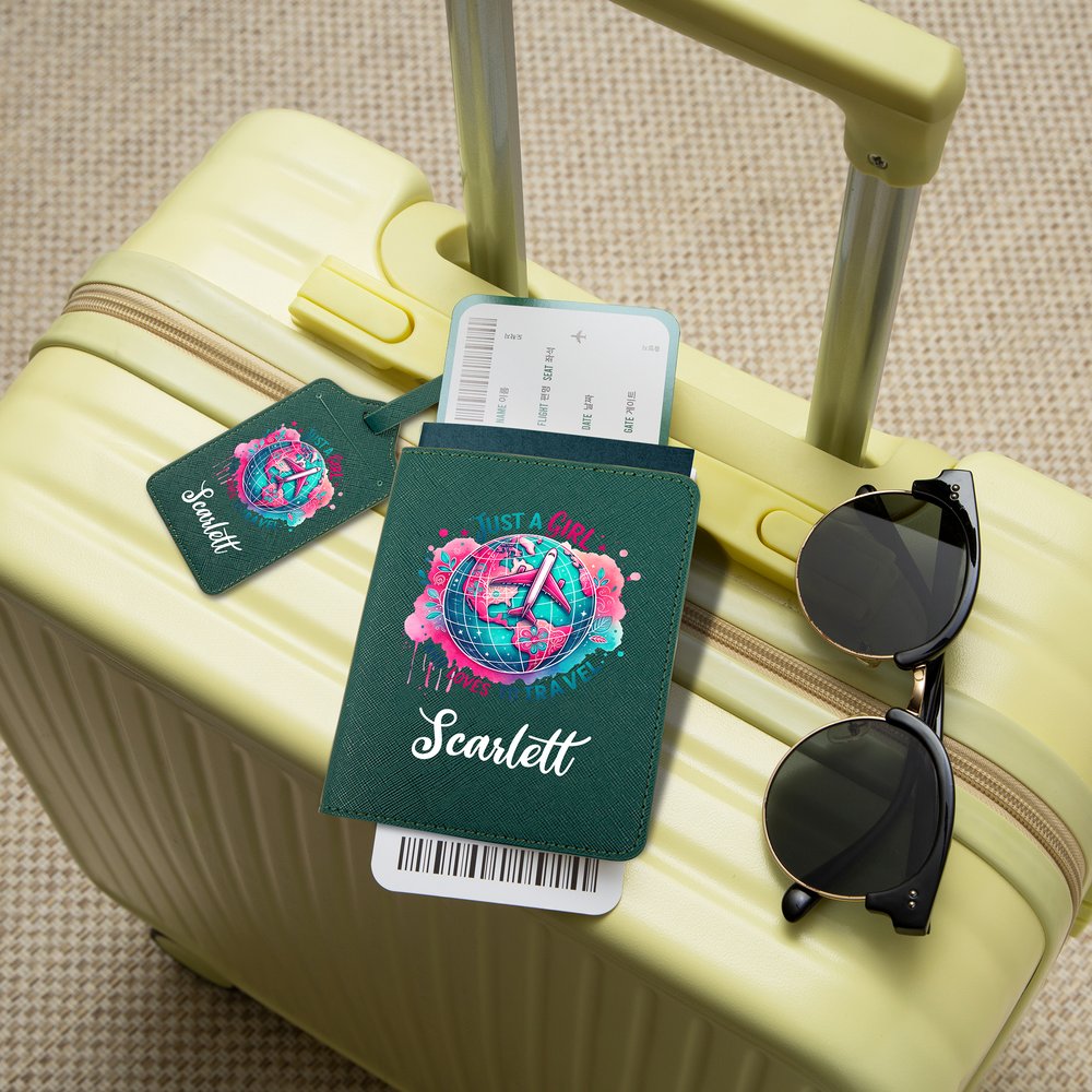 Tämä matkapassin pidike ja matkatavaralappu on saanut inspiraationsa lentokoneista, maasta, kukista ja muista elementeistä, ja siinä on vapaa ja helppo iskulause "JUST A GIRL WHO LOVES TRAVELING", joka viestii vapaasta ja romanttisesta matka-asenteesta. Valittavana on 3 erilaista kuviota, ja se tukee myös nimen räätälöintiä, mikä tekee jokaisesta tuotteesta ainutlaatuisen.
