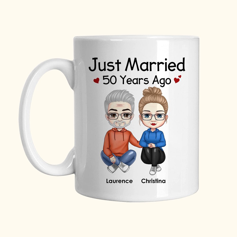 Henkilökohtainen juuri naimisissa monta vuotta sitten Valkoinen ja väri sisällä keraaminen muki Ystävänpäivä Syntymäpäivä pari lahja