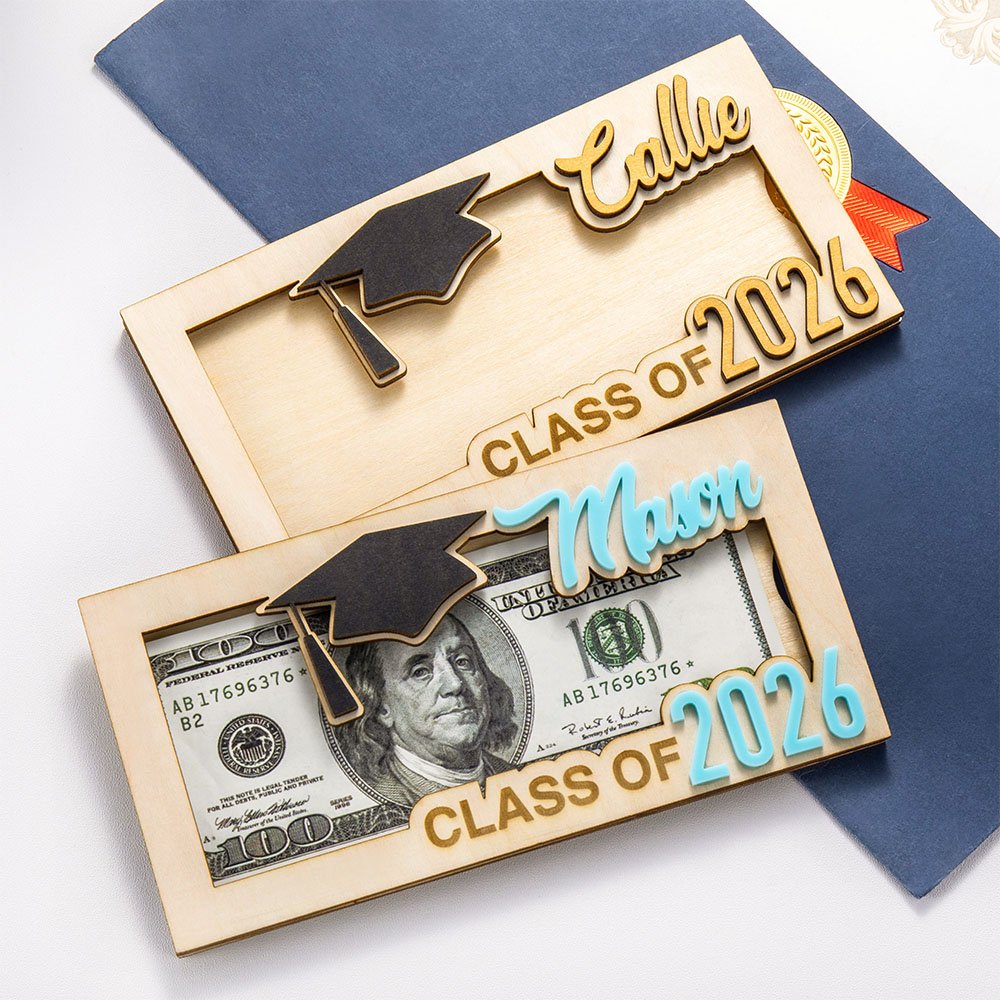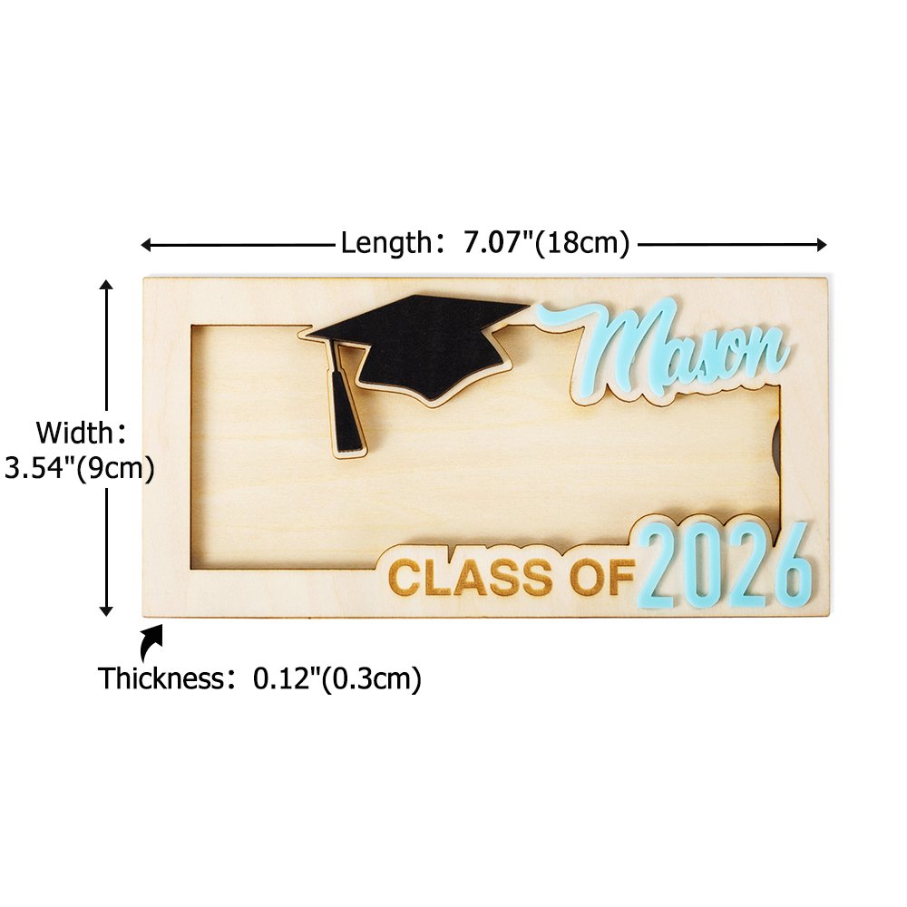 Rahapidikkeessä on tyylikäs muotoilu, ja sen yläosaan on painettu poikamiehen hattu. Voit mukauttaa valmistuneen nimen ja valmistumisvuoden pidikkeen pintaan, jolloin saat aikaan todella erityisen muiston. Tämä rahanpidin on täydellinen vaihtoehto perinteisille valmistumiskorteille, joissa ilmaistaan onnittelut valmistuneille ja parhaat toiveet heidän tulevaisuudelleen sekä tuki ja rohkaisu valmistuneiden tuleville taloudellisille pyrkimyksille.