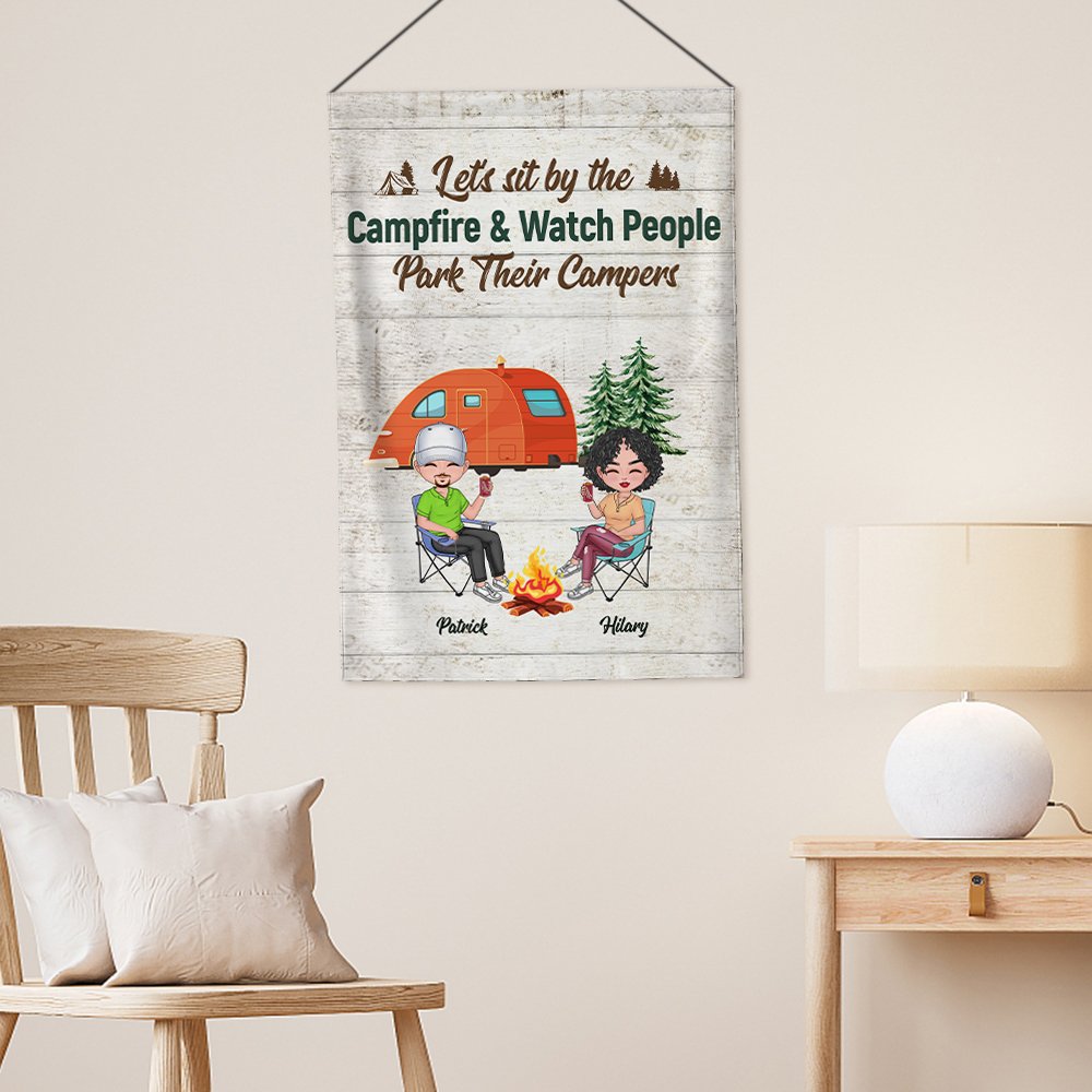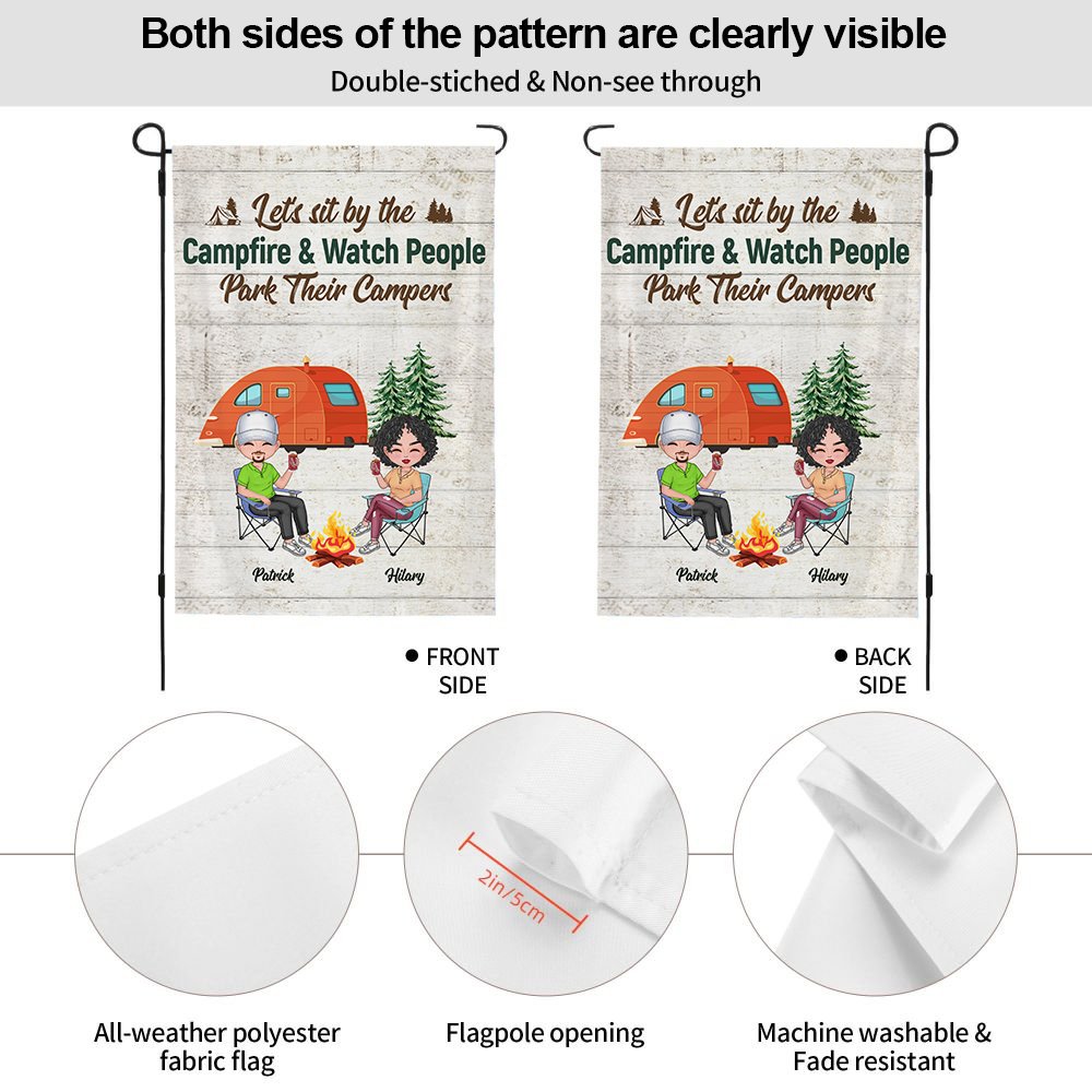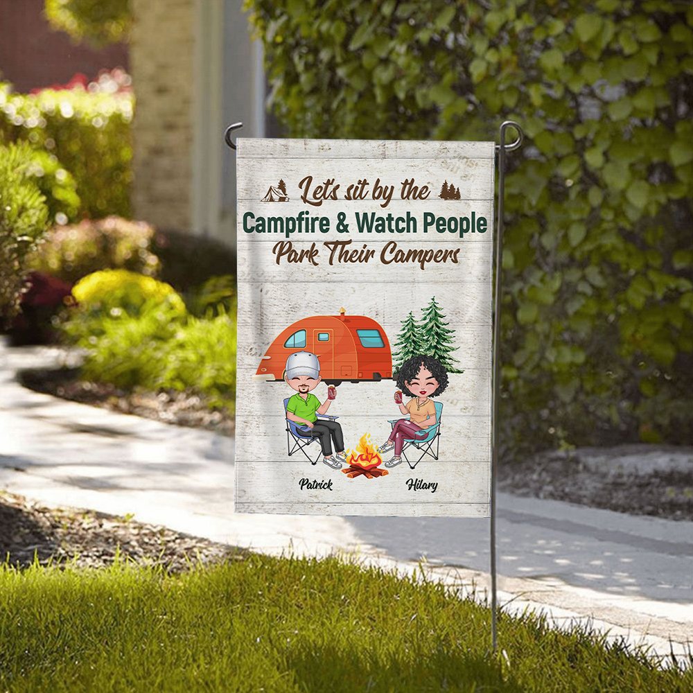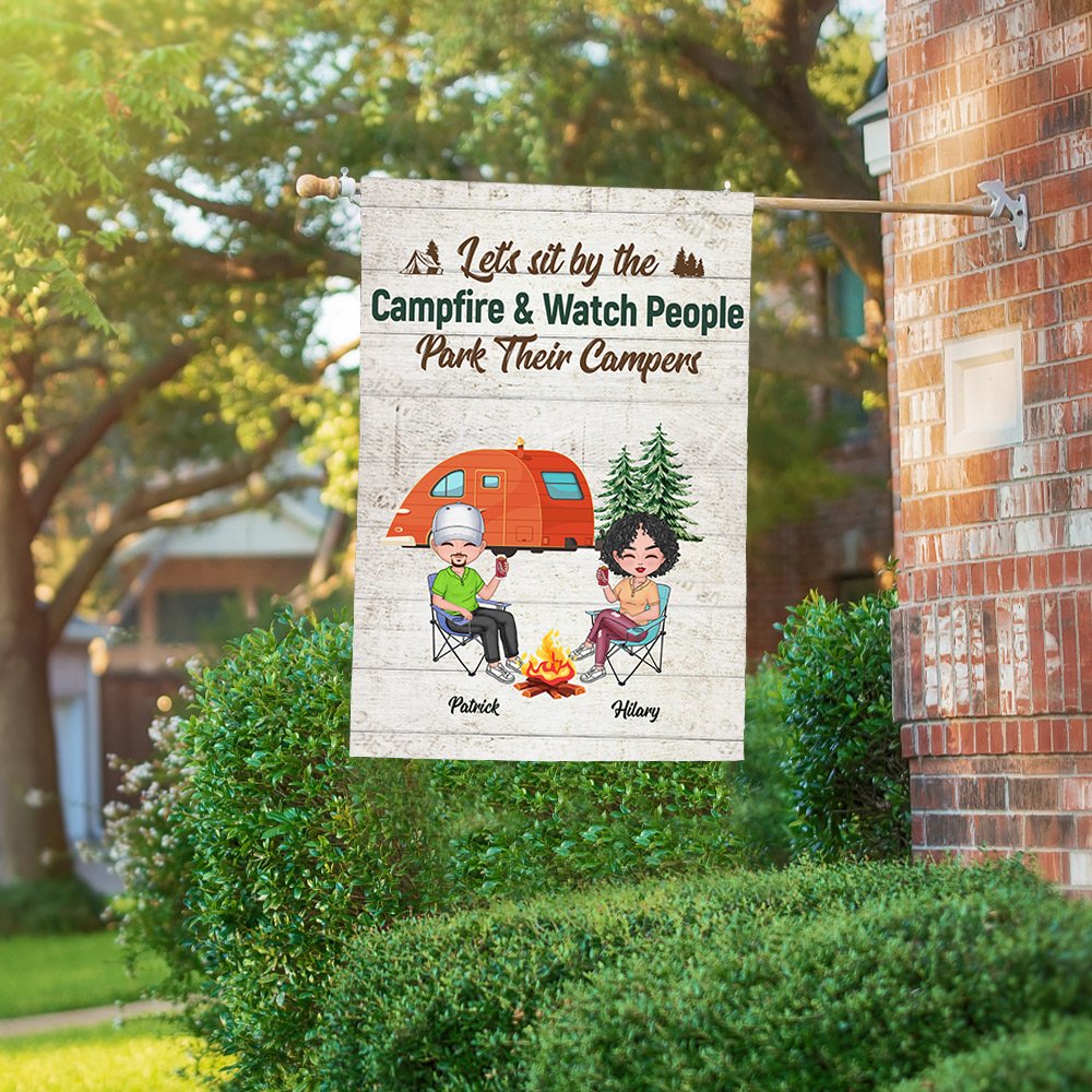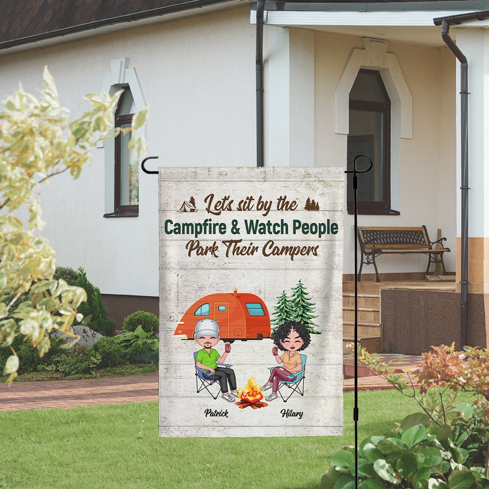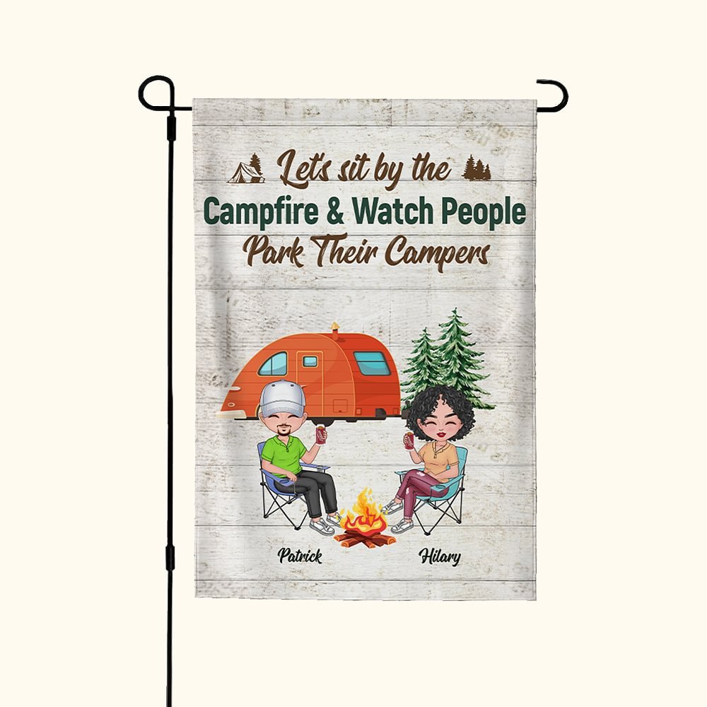 This customized garden flag is the perfect gift for a husband and wife who love camping together. The personalized design includes the couple's names, adding a romantic touch to their outdoor space.