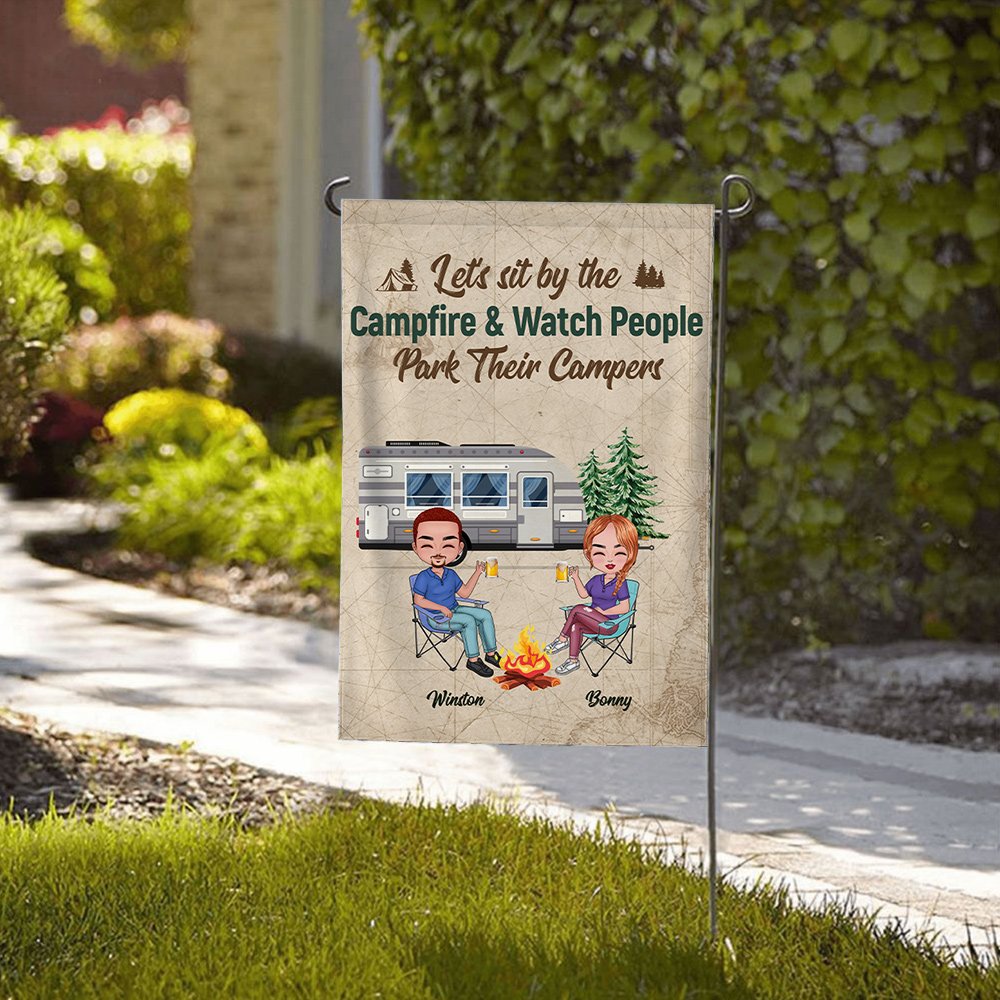 This customized garden flag is the perfect gift for a husband and wife who love camping together. The personalized design includes the couple's names, adding a romantic touch to their outdoor space.