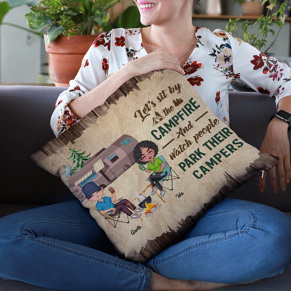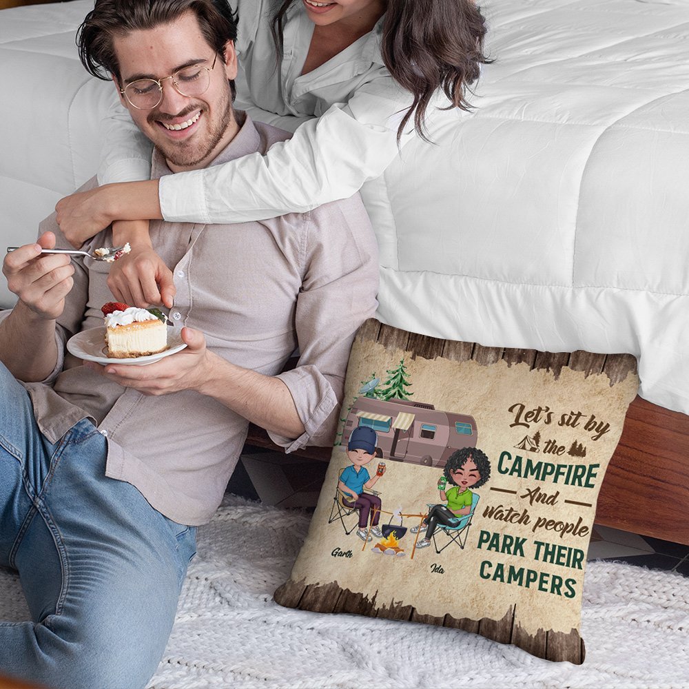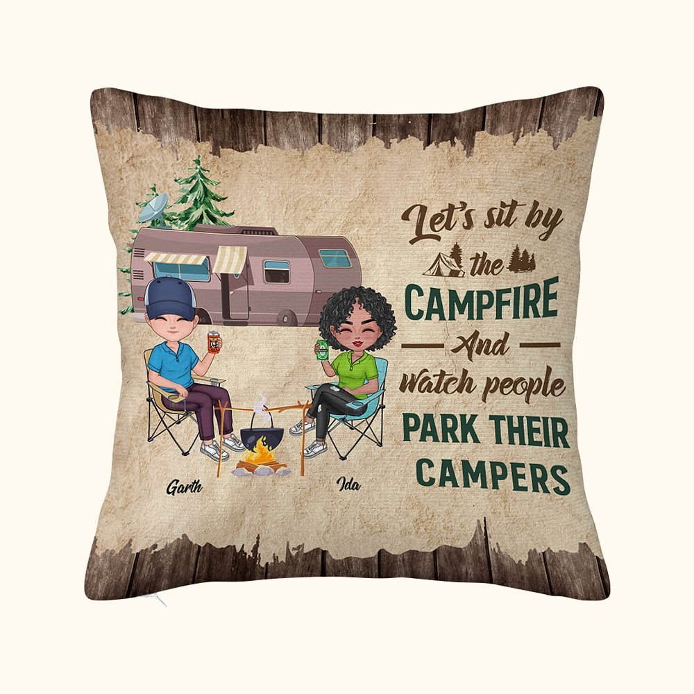 Henkilökohtainen Istutaan leirinuotion äärellä ja katsellaan, kun ihmiset pysäköivät leirintäautojaan heittää tyynynpäällinen vuosipäivä syntymäpäivälahja leirintäalueelle pariskunnalle sohvan sisustu