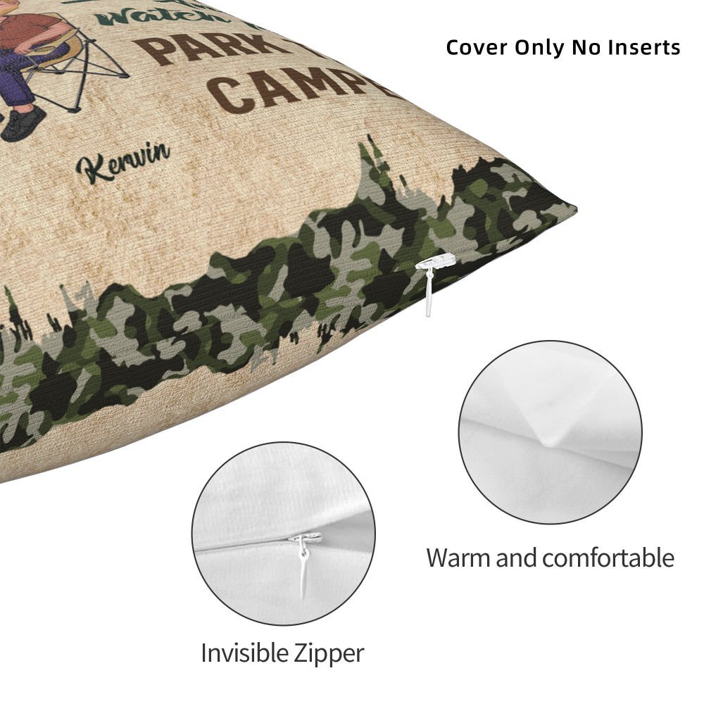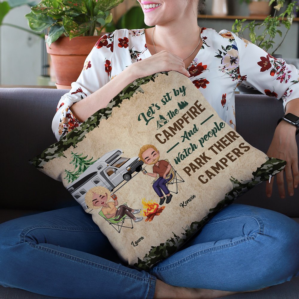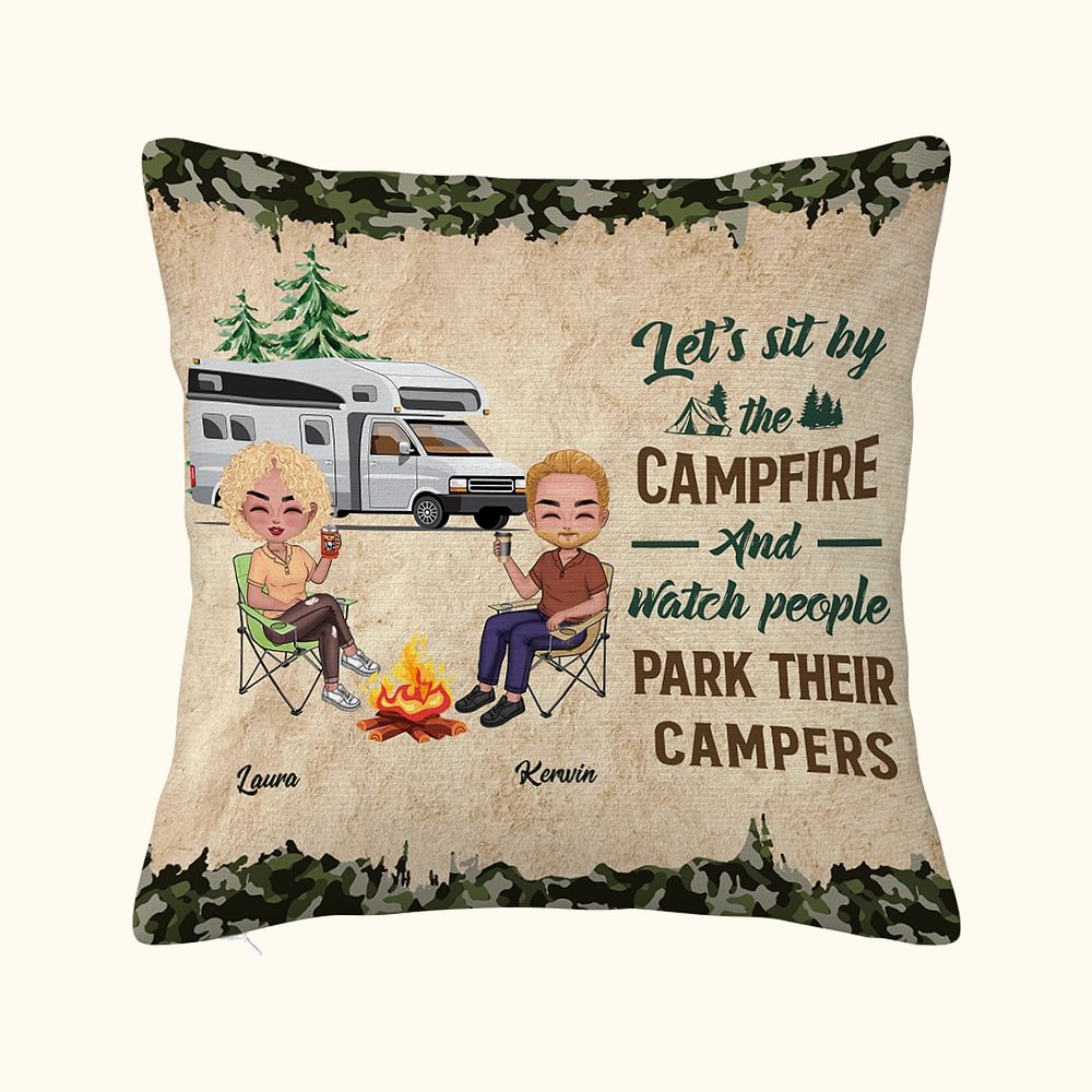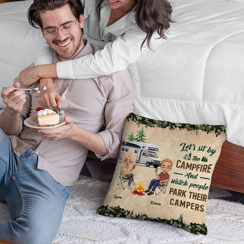 Henkilökohtainen Istutaan leirinuotiolla ja katsellaan, kun ihmiset pysäköivät leirintäautojaan heittää tyynynpäällinen lahja leirintäalueelle parin makuuhuoneen sisustus