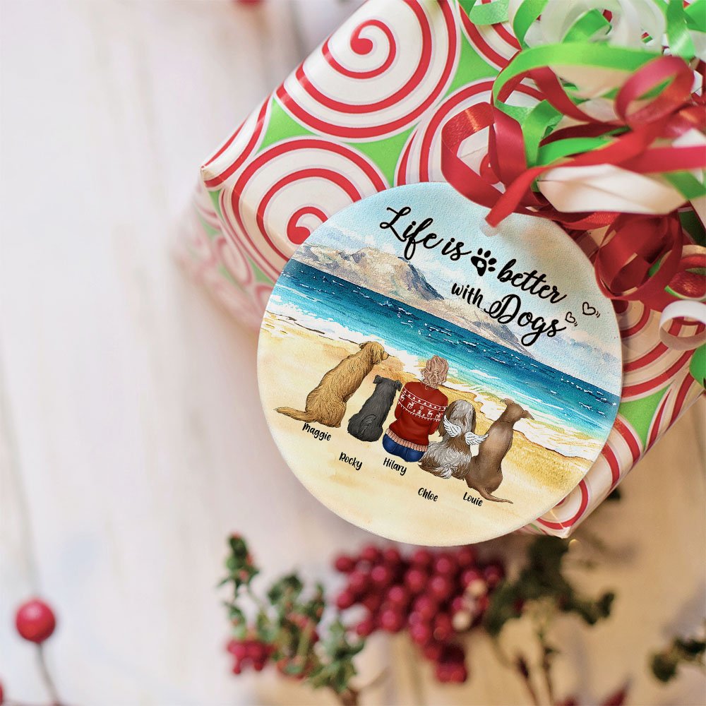 The backdrop of the sea adds a sense of harmony and calm to the decorations. "Life is Better with a Dog" shows your love and missing for dogs. The hanging round shape feels gentle, making it stand out from other accessories and really showing your love for your dog.