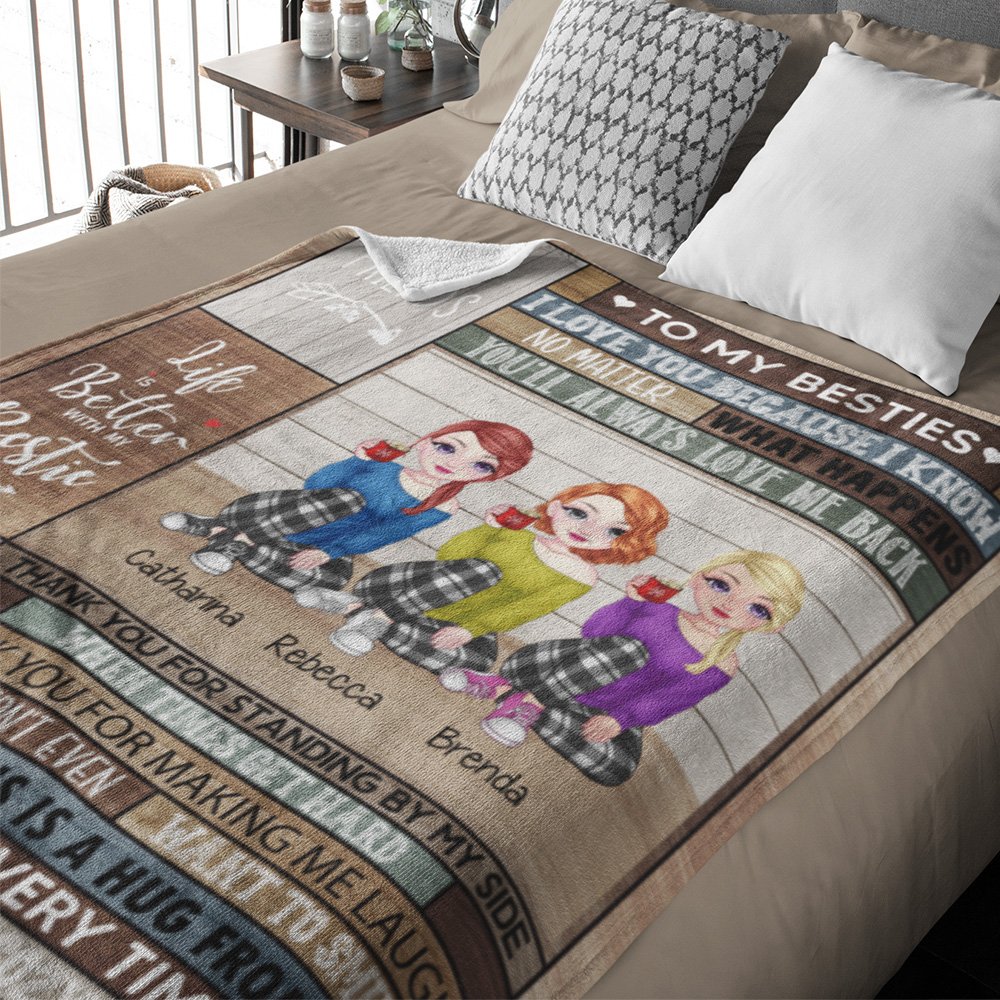 What sets this blanket apart from other gifts is the personal touch of customization. The text "Life is Better with Besties" is printed on the blanket along with "Best Friends", making it a truly unique and special present for your soul sister.