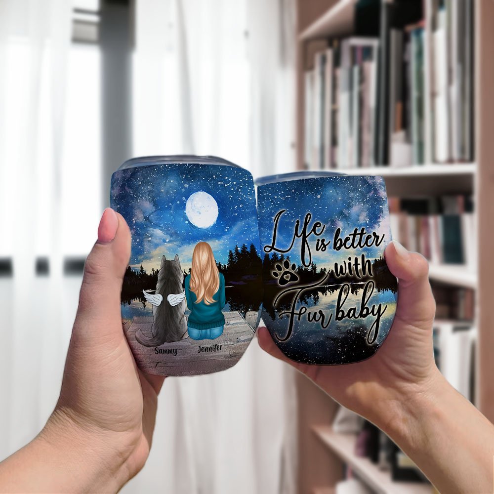 The quote "Life Is Better With Fur Baby" celebrates people's undying love for pets. Print this unique phrase on the tumbler with your own and your pet's exclusive name, so that this bond that belongs only to you will last forever.