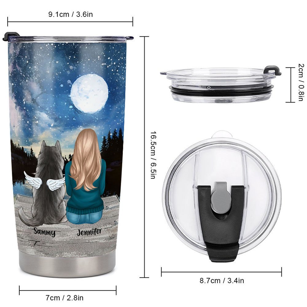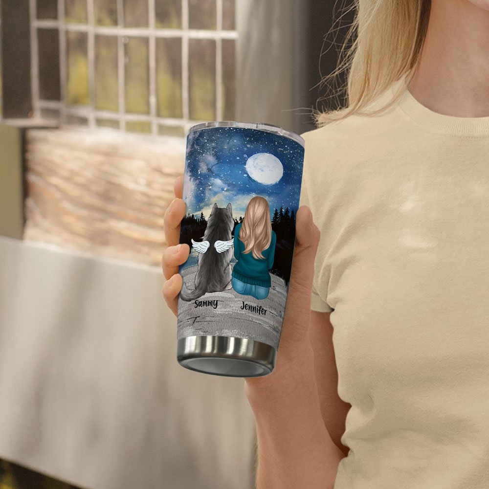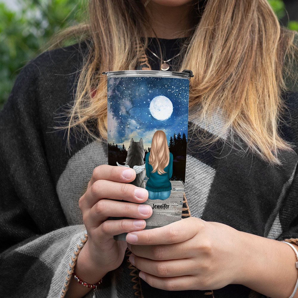 You can personalize the dog who went away or accompanied you. The dog with angel wings and the dogs that are with you now will always protect you and accompany you.
