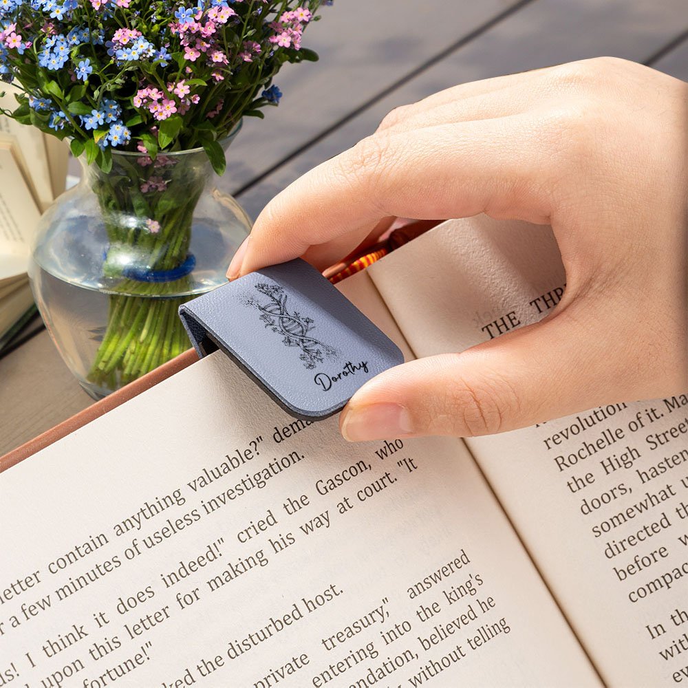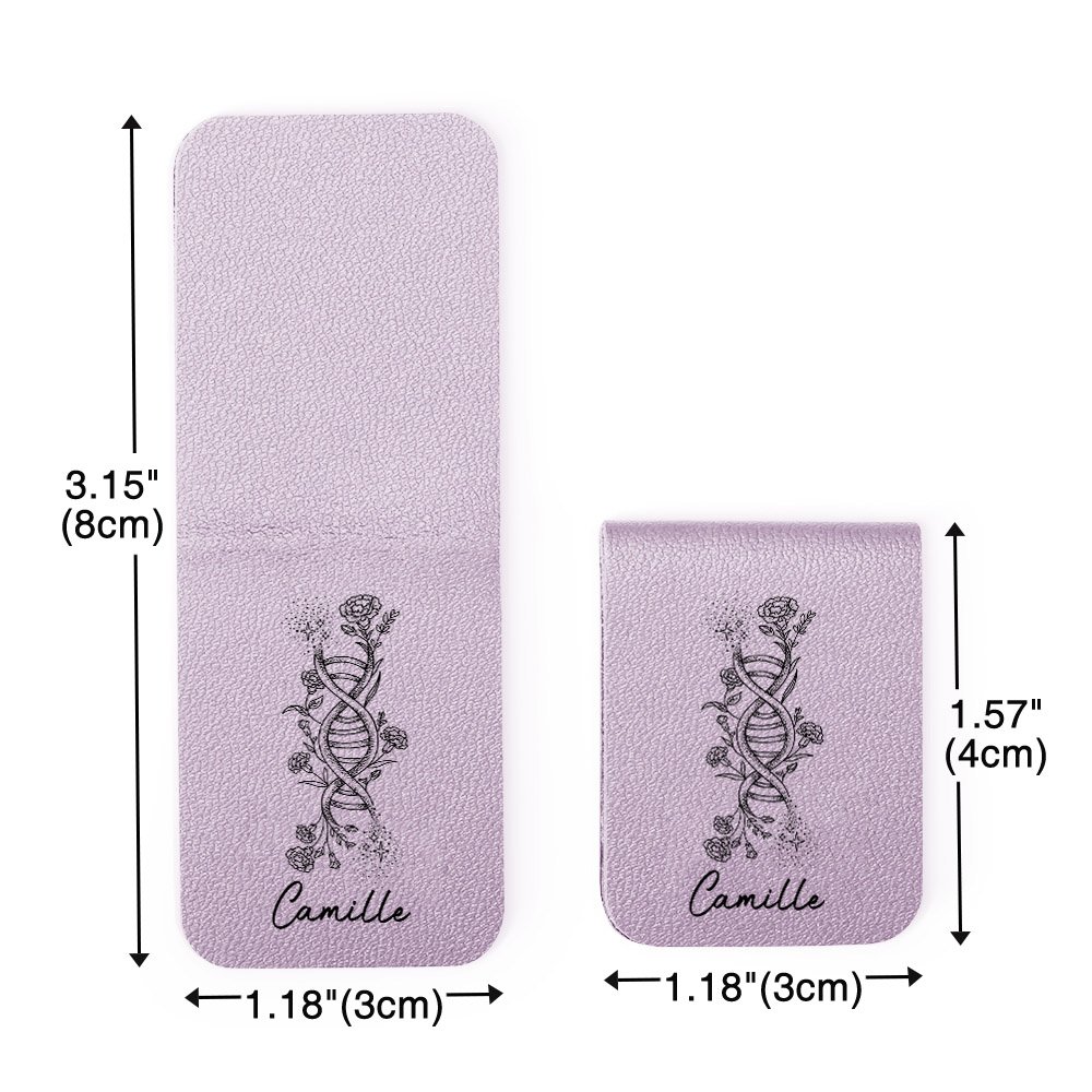Tässä nahkaisessa kirjanmerkissä yhdistyvät taitavasti DNA-tekstuuri ja syntymäkukkaelementit, jotka viittaavat elämän ainutlaatuisuuteen ja kasvun merkkiin. Jokainen syntymäkukka symboloi eri kuukausien siunausta, kun taas DNA-viiva edustaa persoonallisuutta ja perintöä, mikä tekee jokaisesta kirjanmerkistä ainutlaatuisen. Mukauta nimesi, jotta tämä kirjanmerkki ei olisi vain lukuväline vaan myös taideteos, jolla on tunnearvoa.