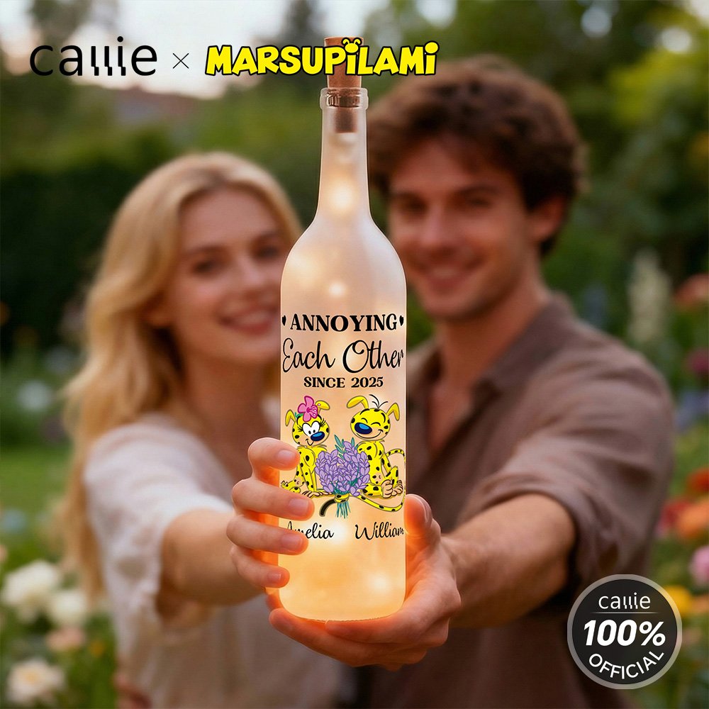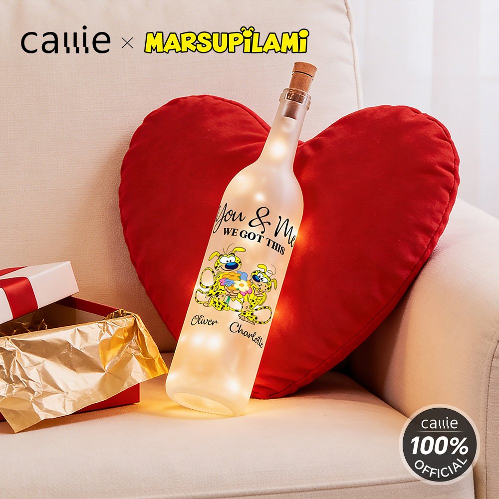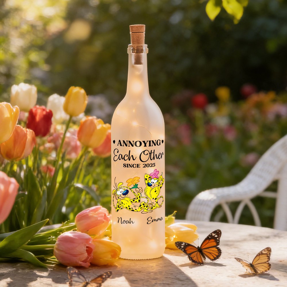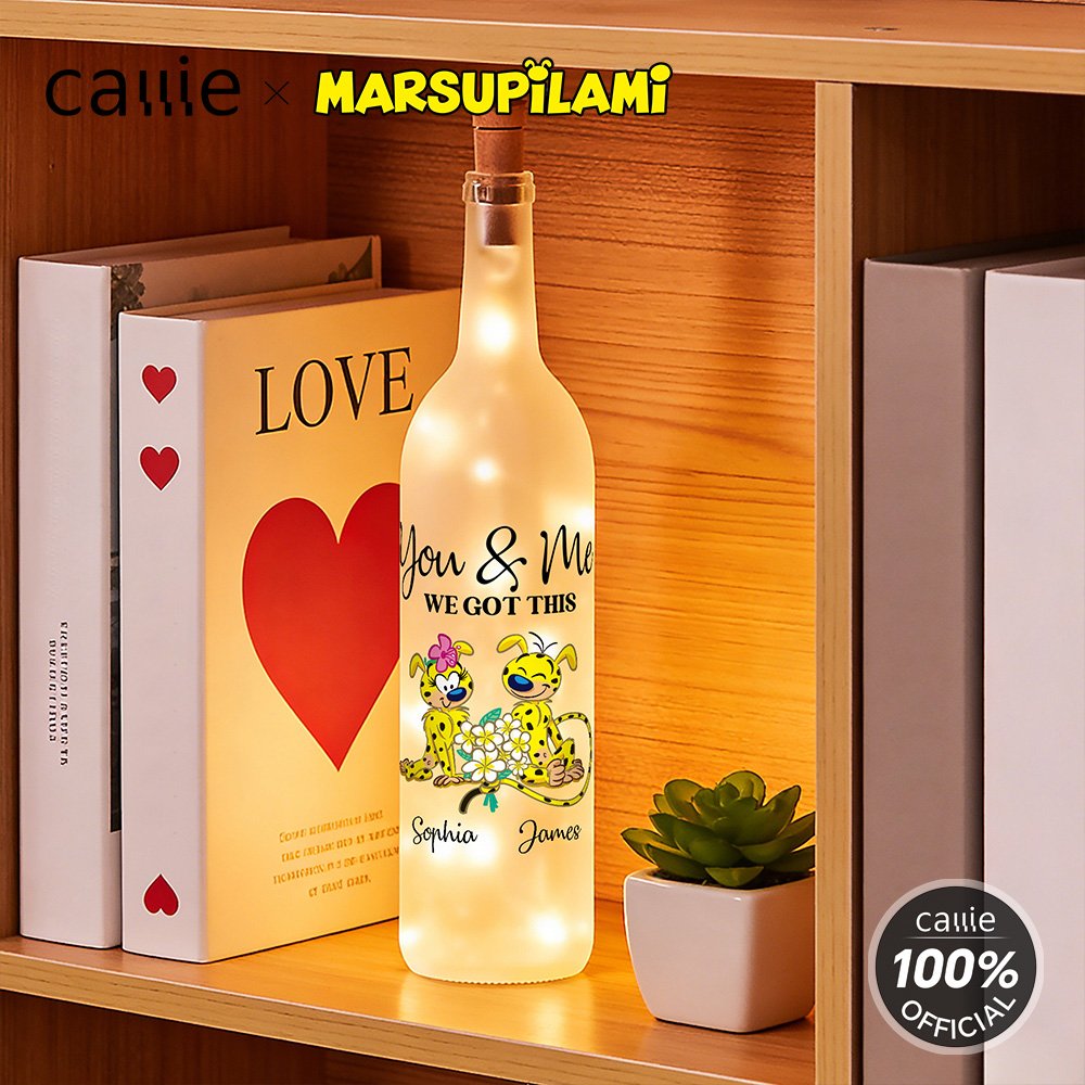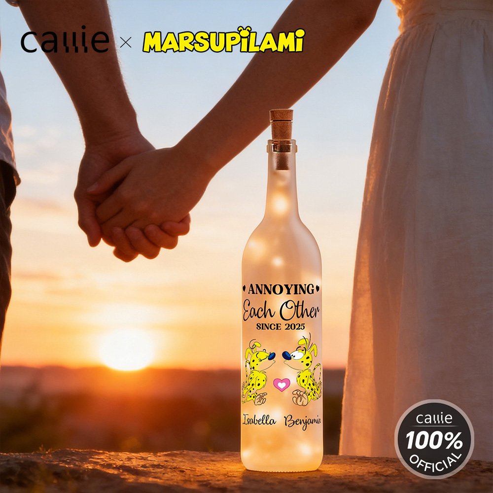 Henkilökohtainen Long Tailed Leopard Marsupilami Rakkaus lainaus LED Pullolamppu nimi Home Decor Ystävänpäivä lahja pariskunnille | Callie × Marsupilami®
