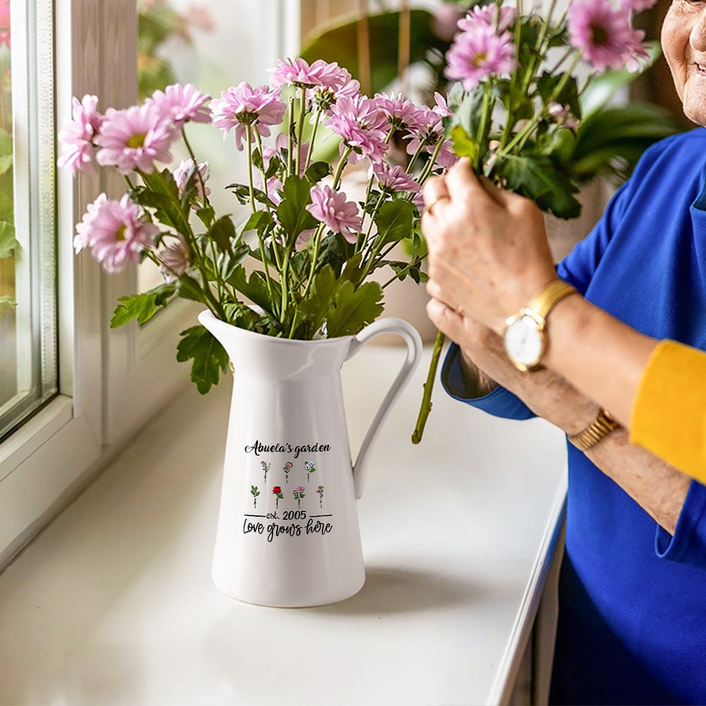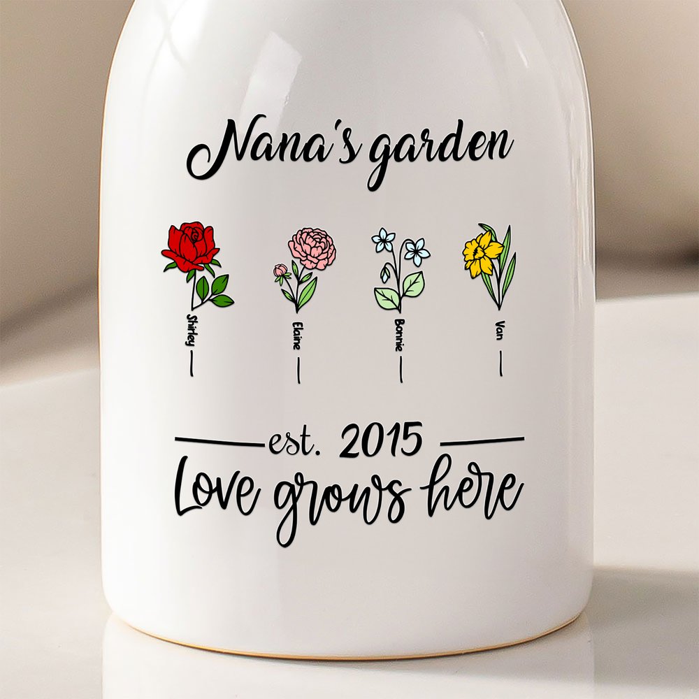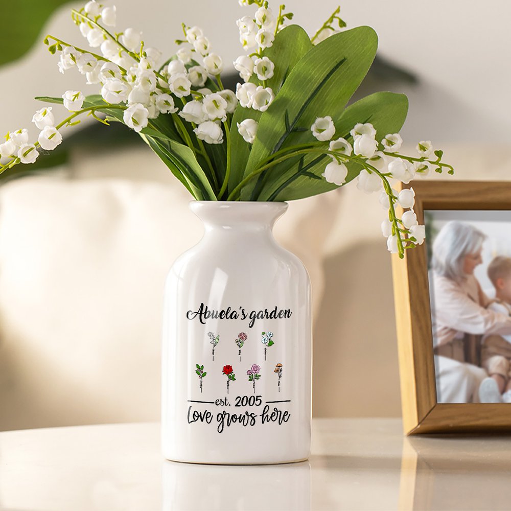 Henkilökohtainen Rakkaus kasvaa täällä Syntymä Kukkapuutarha Keraaminen kukka maljakko otsikko ja 1-12 nimet Syntymäpäivä Äitienpäivä lahja äidille isoäitiille