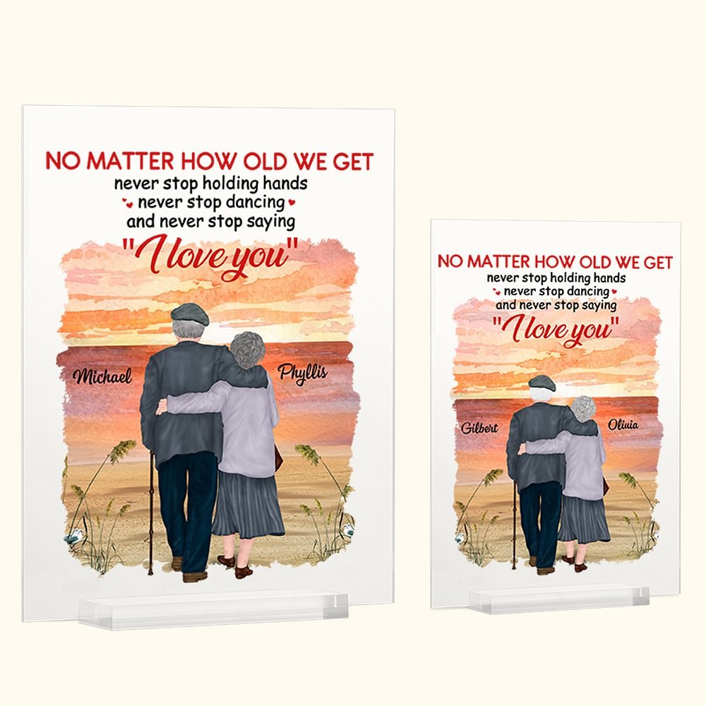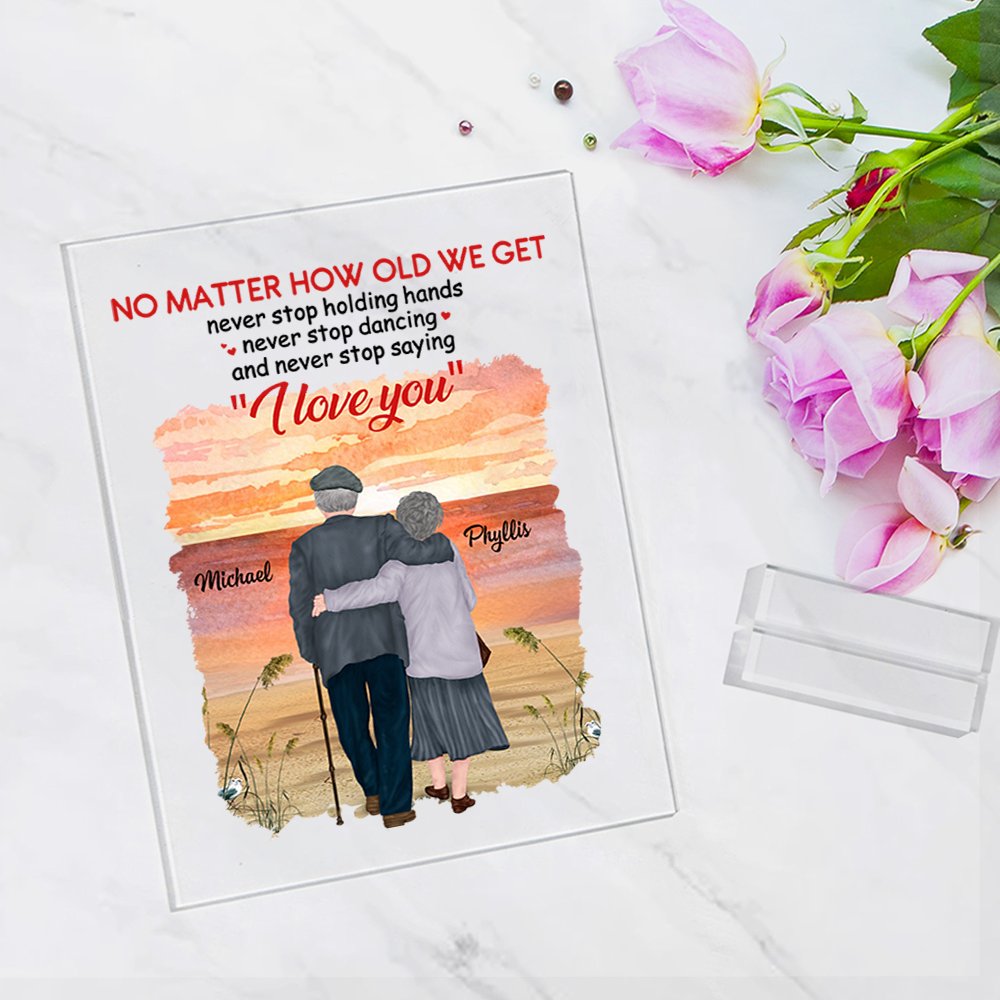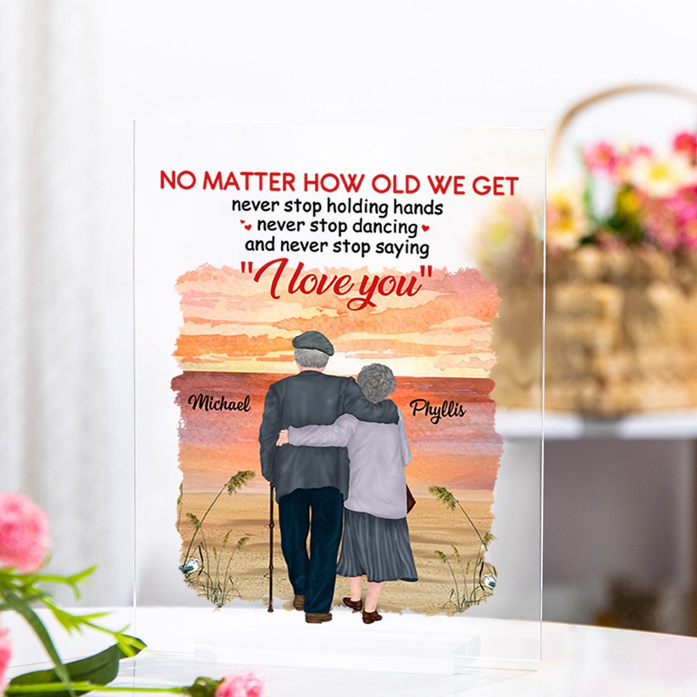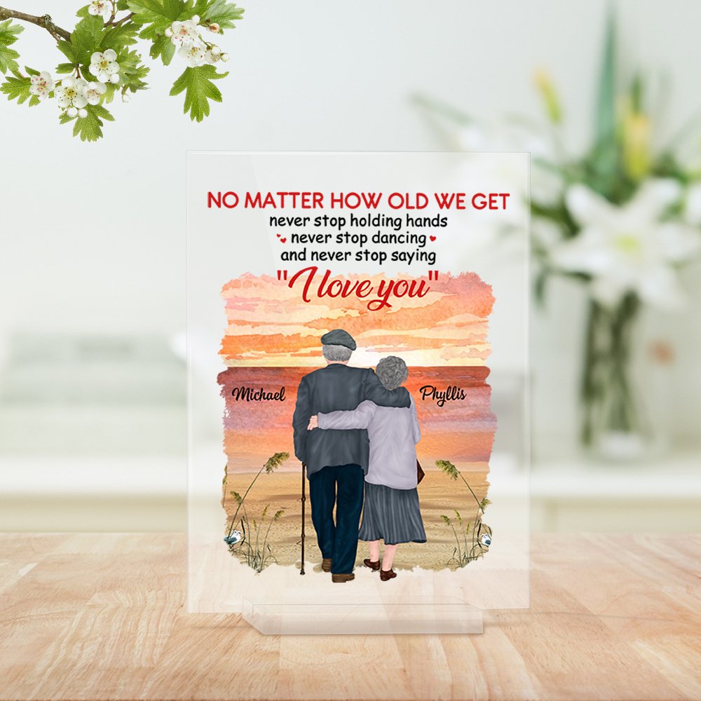 Akryylinen koriste on yksilöllinen vanhan pariskunnan selkäpuolella, voit muokata nimeä, kampauksia ja pukeutumistyyliä, luoda ainutlaatuisen kohtauksen rakkauden runolla, joka ilmaisee rakkautesi perheenjäsenellesi.