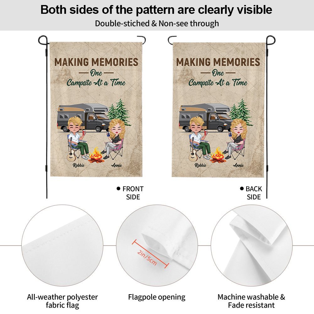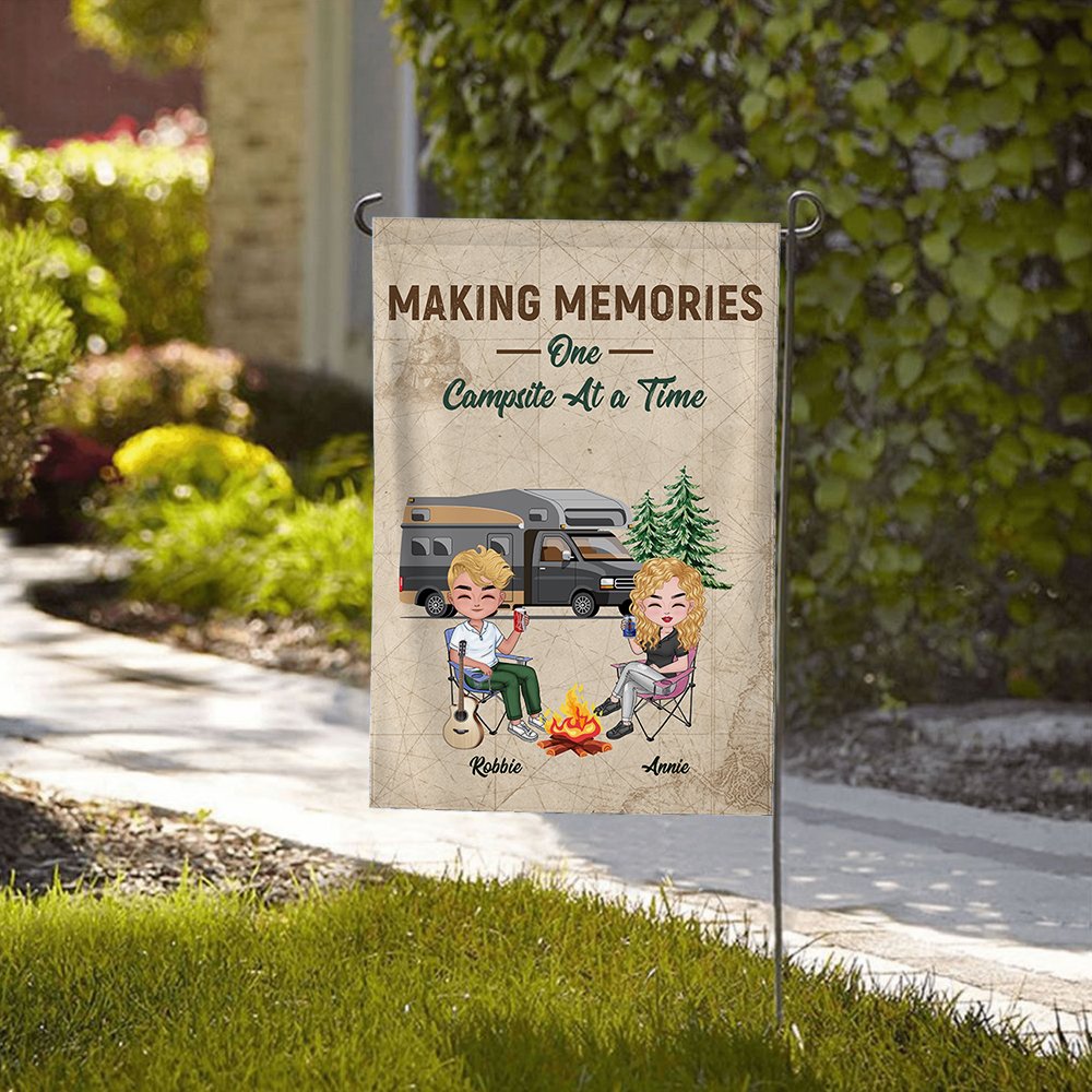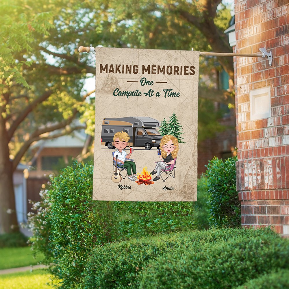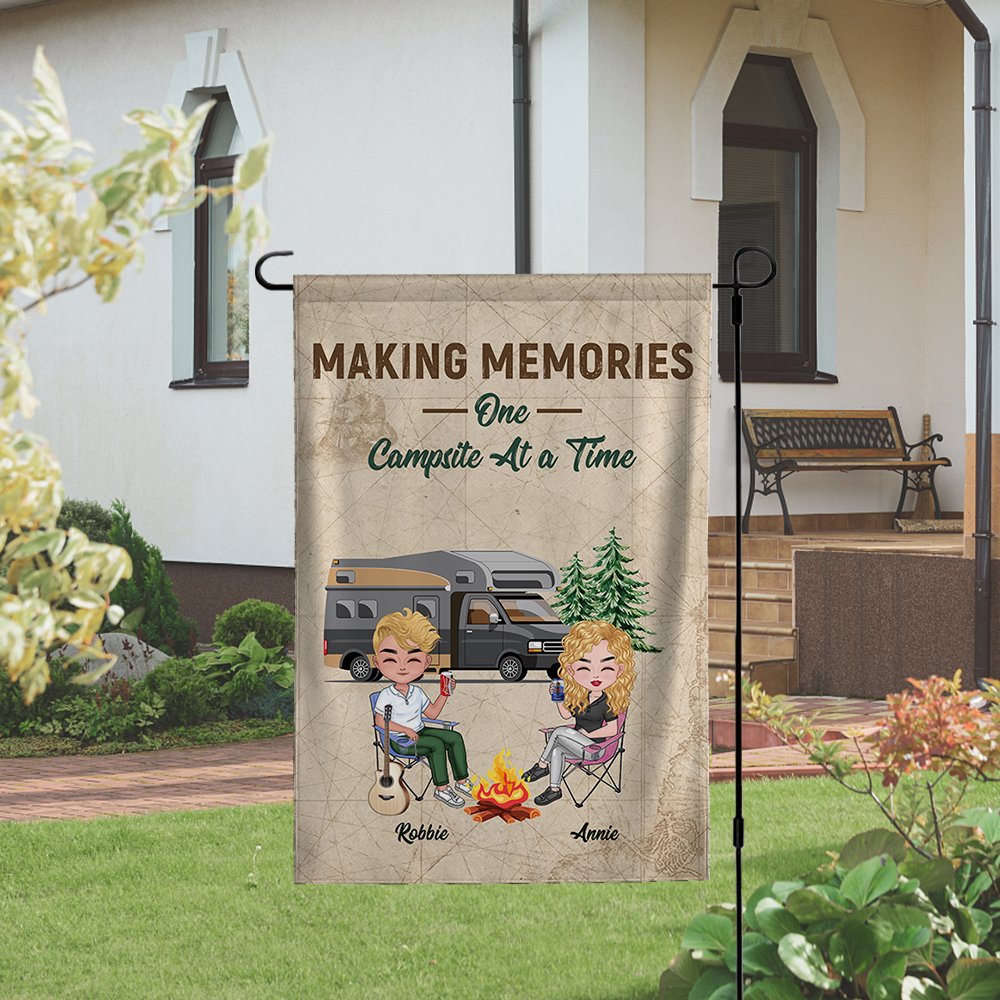 This customized garden flag is the perfect gift for a husband and wife who love camping together. The personalized design includes the couple's names, adding a romantic touch to their outdoor space.