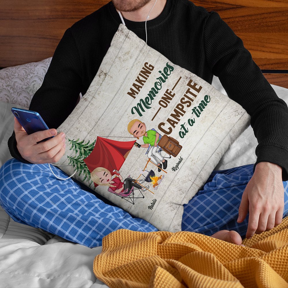 Henkilökohtainen Making Memories One Campsite At A Time Throw Tyynynpäällinen Syntymäpäivälahja Camping Couple Sohva Decor