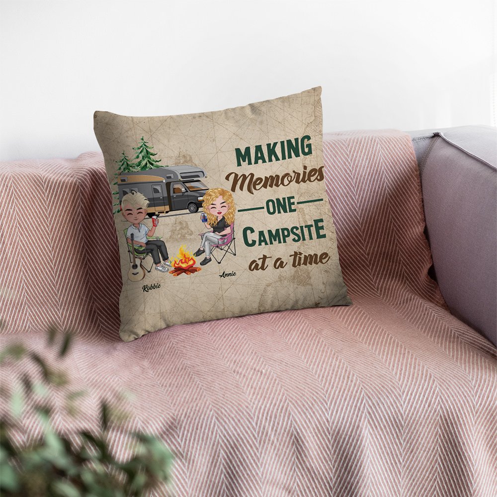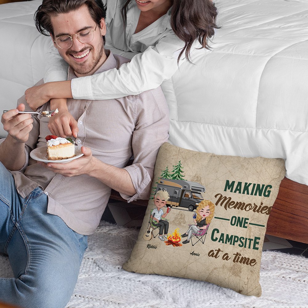 Henkilökohtainen Making Memories One Campsite At A Time Throw tyynyn kansi Syntymäpäivä Vuosipäivä Lahja Camping Pariskunta Sohva Decor