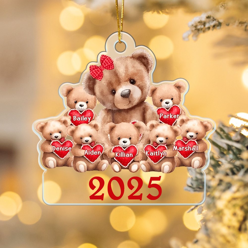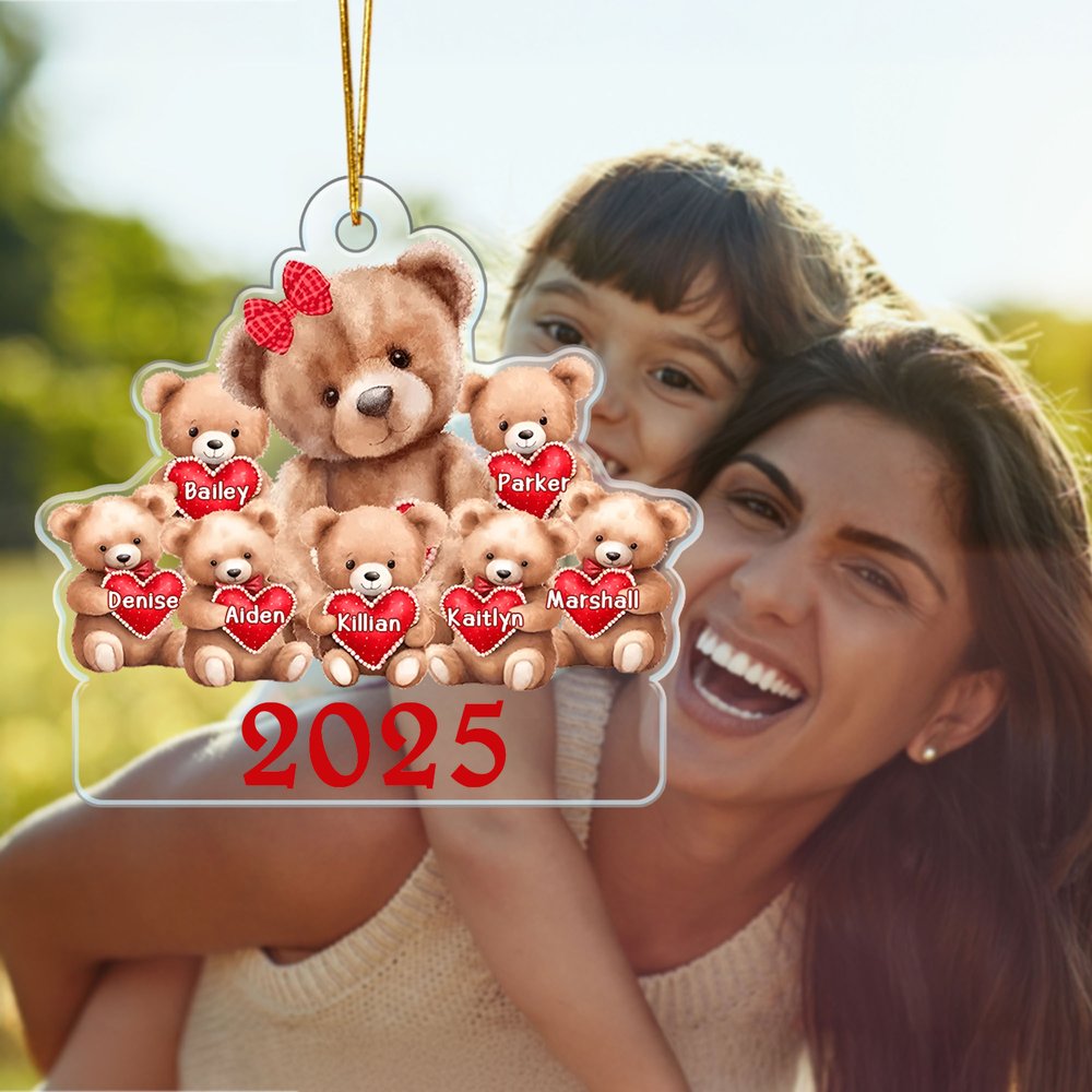 Ripustettavassa koristeessa on "Äitikarhu" tai "Mummokarhu" ja jopa kymmenen karhunpentua, jotka symboloivat äidin ja lapsen välistä katkeamatonta sidettä. Jokaiseen karhuun voidaan painaa lapsen nimi, ja kuvat pennuista emokarhunsa ympärillä luovat lämpimän ja elävän kuvan, kuin perheelle omistetun rakastavan käärön. Mukautettavat vuosiluvut mahdollistavat muistojen vaalimisen tulevina vuosina.