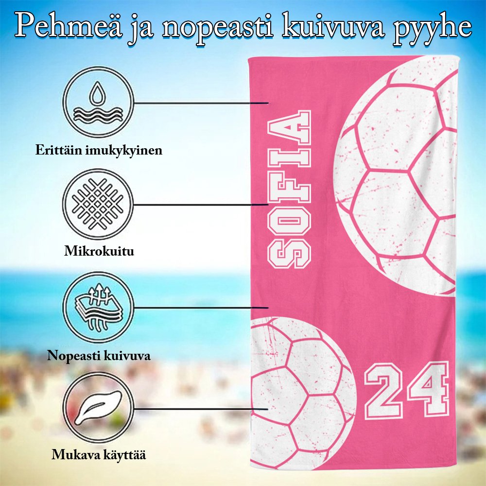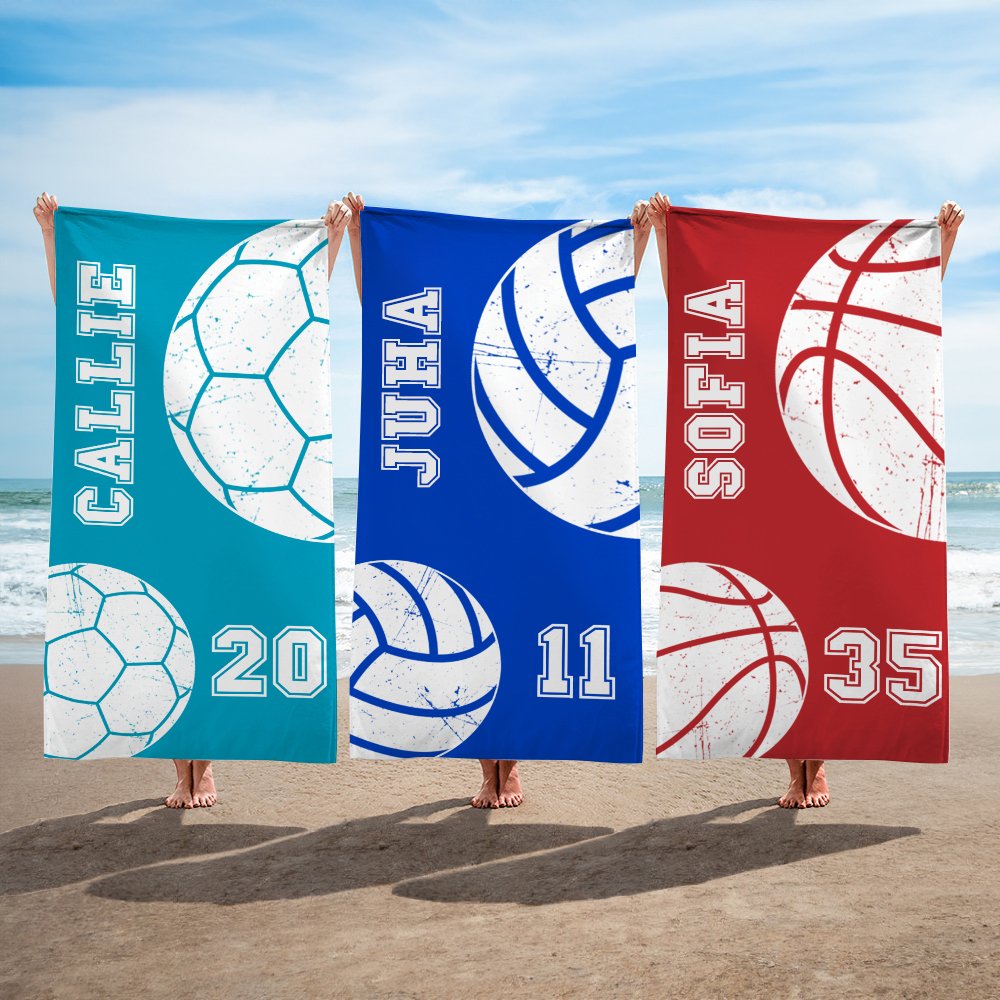 Tämän rantapyyhkeen muotoilu on saanut inspiraationsa 22 eri pallopelistä, kuten koripallosta, jalkapallosta, softballista ja baseballista. Jokainen kuvio kuvastaa rakkautta ja intohimoa urheiluun. Valittavanasi on 23 väriä, ja voit vapaasti personoida numeron ja nimen luodaksesi täysin yksilöllisen tyylin.