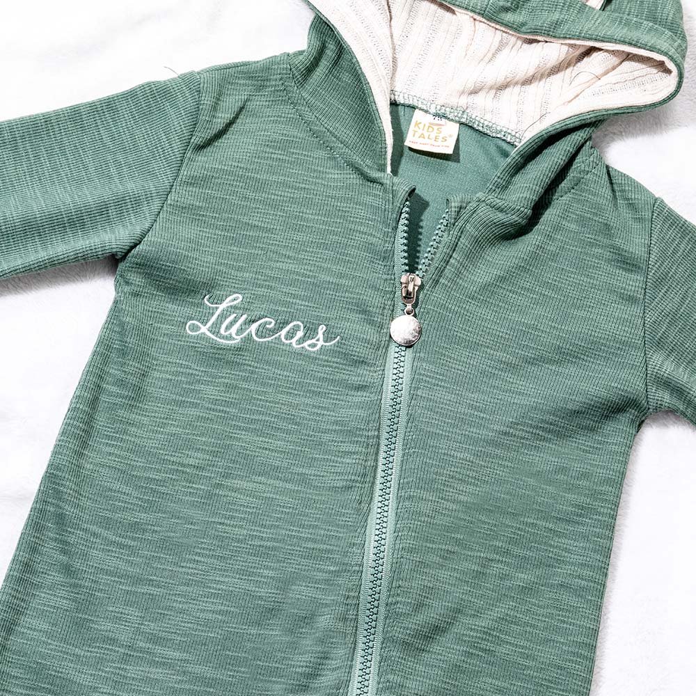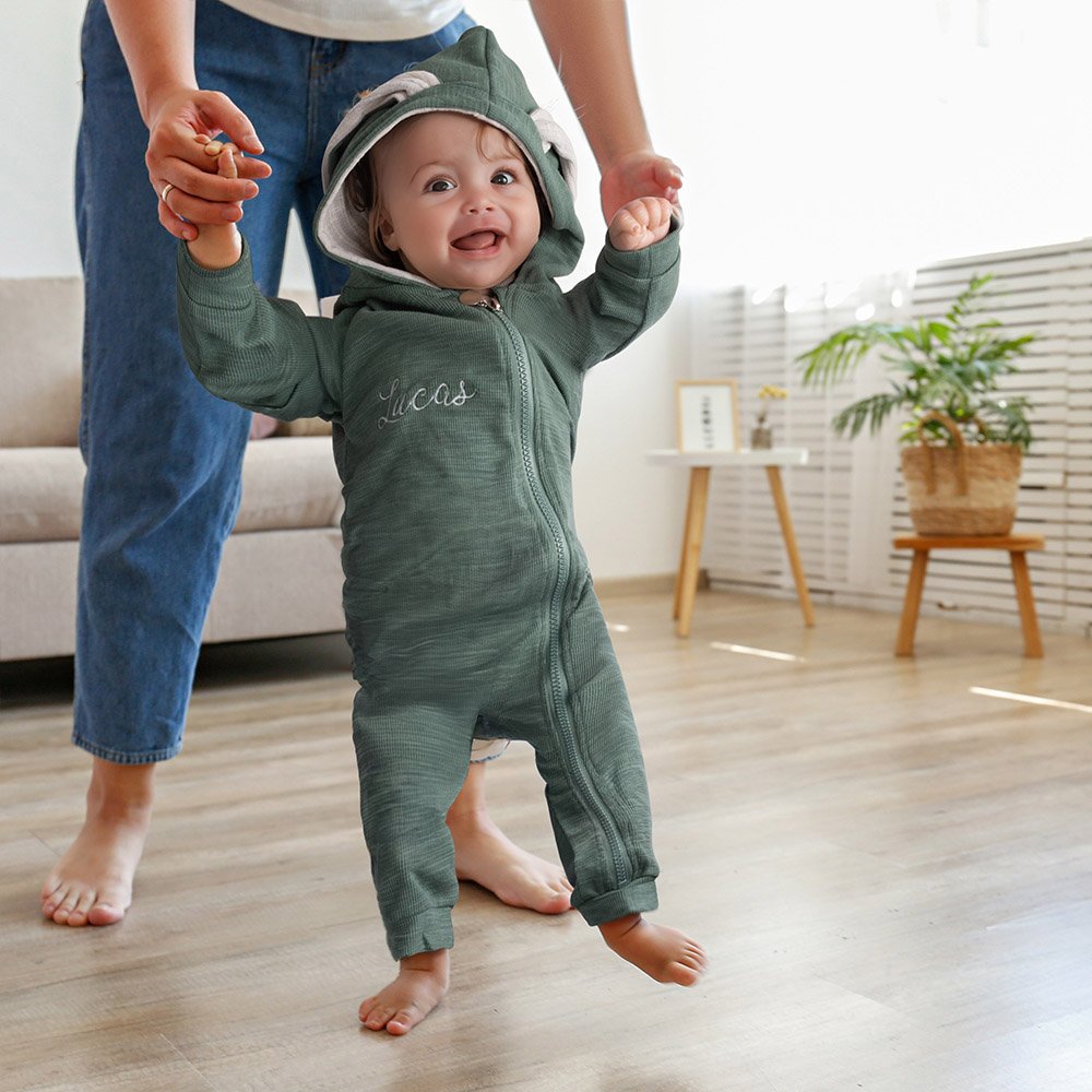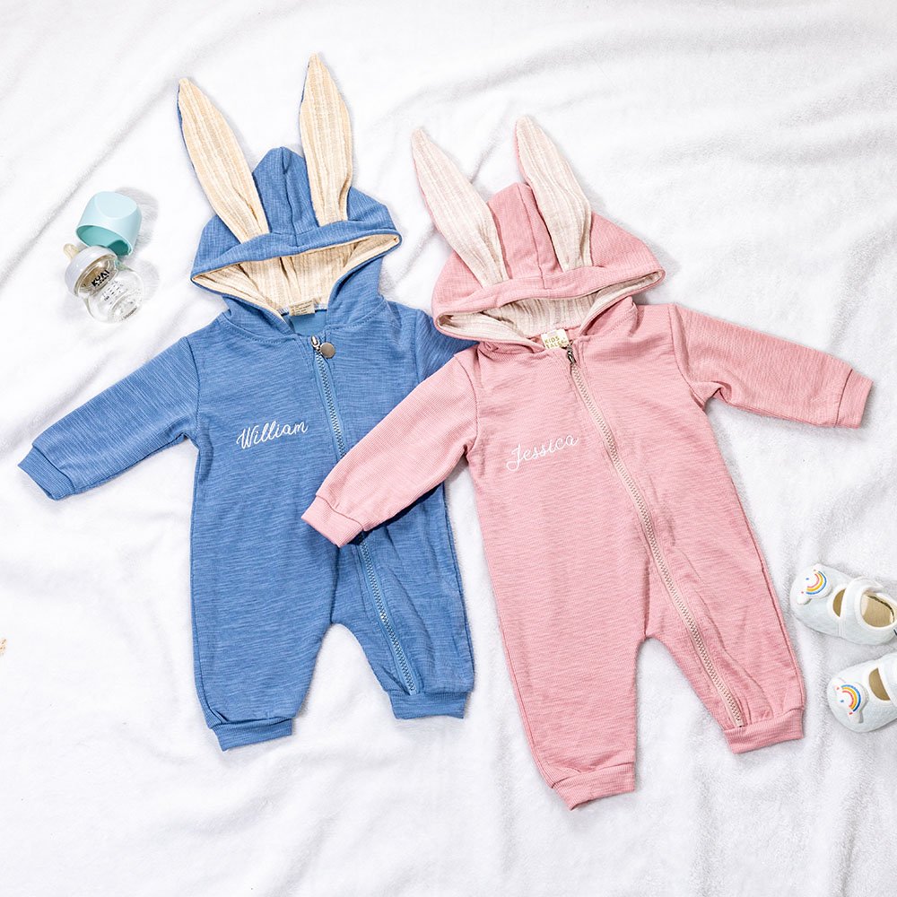 Tässä bodysuitissa yhdistyvät täydellisesti lapsellisuus ja yksilöllinen muotoilu. Pupunkorvainen hattumuotoilu lisää leikkisyyttä ja söpöyttä. Yhdessä kirjonta-tekniikan kanssa vauvan nimi voidaan kirjailla hienovaraisesti vaatteisiin, jolloin jokaiselle vauvalle voidaan luoda ainutlaatuinen asu.